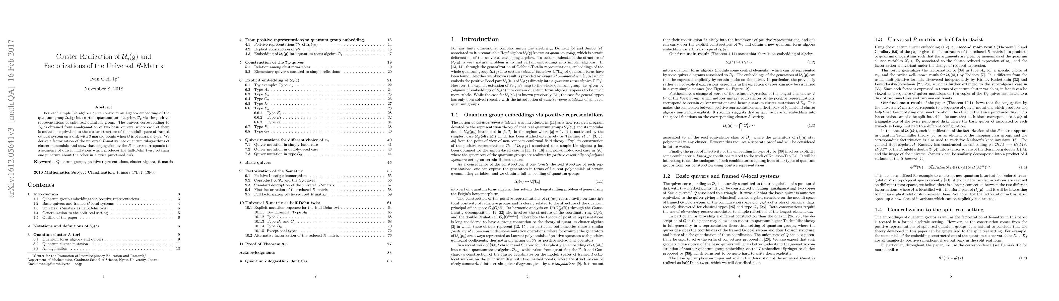 Researchers created an algebraic embedding of $U_q( ext{g})$ into a quantum torus algebra, linking it to cluster quivers in the moduli space of framed systems. They found a factorization of the universal R-matrix using quantum dilogarithms and showed that conjugation by the R-matrix corresponds to quiver mutations producing half-Dehn twists.