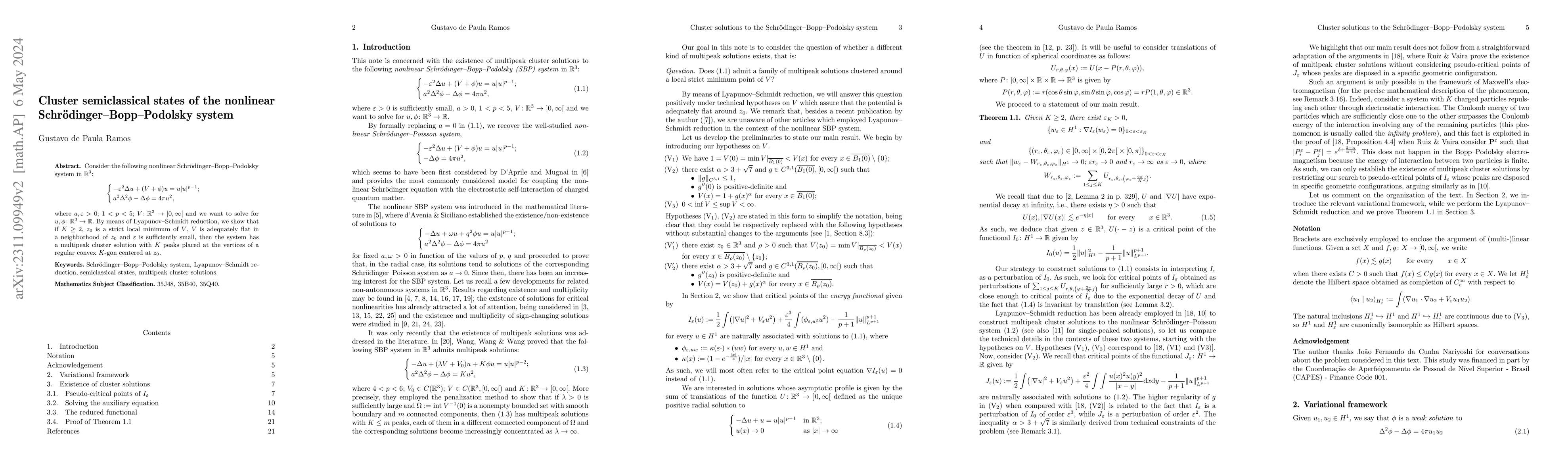 This paper studies the cluster semiclassical states of a nonlinear Schrödinger-Bopp-Podolsky system in three dimensions, revealing that under specific conditions, the system supports multipeak solutions centered around a local minimum of the potential function, using Lyapunov-Schmidt reduction.