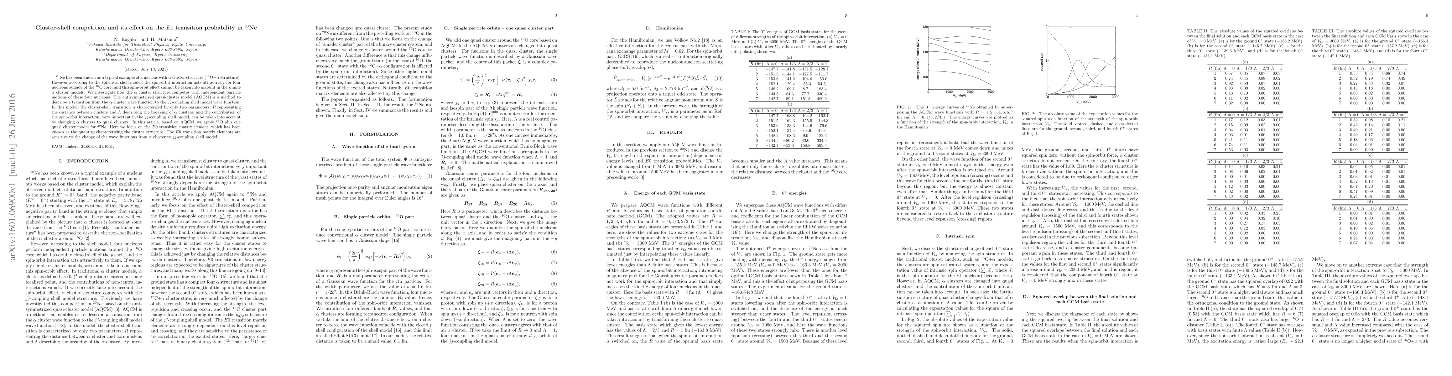 $^{20}$Ne has been known as a typical example of a nucleus with $\alpha$ cluster structure ($^{16}$O+$\alpha$ structure). However according to the spherical shell model, the spin-orbit interaction acts attractively for four nucleons outside of the $^{16}$O core, and this spin-orbit effect cannot be taken into account in the simple $\alpha$ cluster models. We investigate how the $\alpha$ cluster structure competes with independent particle motions of these four nucleons. The antisymmetrized quasi-cluster model (AQCM) is a method to describe a transition from the $\alpha$ cluster wave function to the $jj$-coupling shell model wave function. In this model, the cluster-shell transition is characterized by only two parameters; $R$ representing the distance between clusters and $\Lambda$ describing the breaking of $\alpha$ clusters, and the contribution of the spin-orbit interaction, very important in the $jj$-coupling shell model, can be taken into account by changing $\alpha$ clusters to quasi clusters. In this article, based on AQCM, we apply $^{16}$O plus one quasi cluster model for $^{20}$Ne. Here we focus on the $E0$ transition matrix element, which has been known as the quantity characterizing the cluster structure. The $E0$ transition matrix elements are sensitive to the change of the wave functions from $\alpha$ cluster to $jj$-coupling shell model.