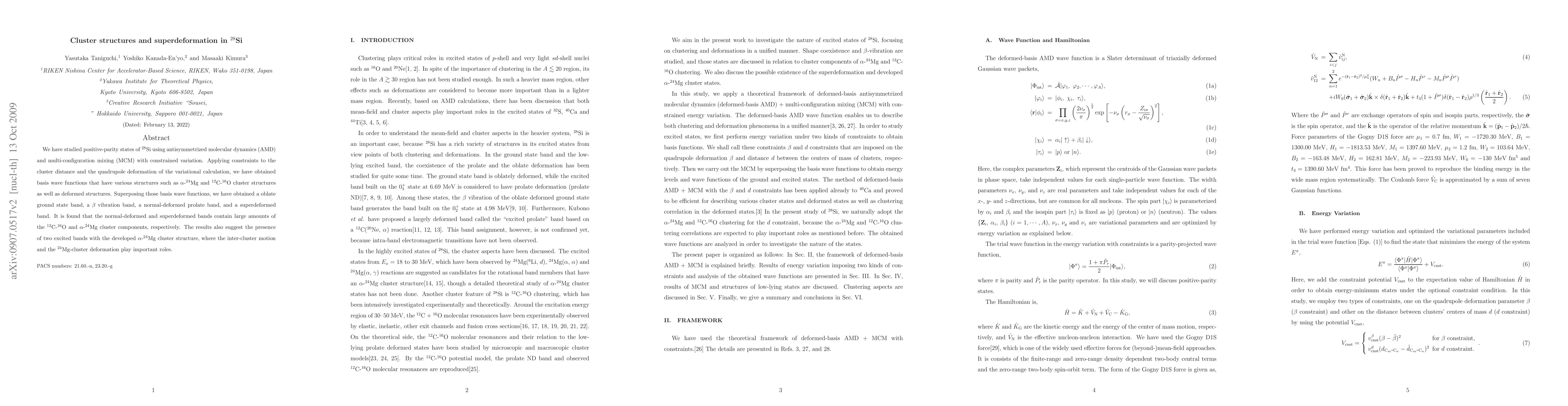 Research on $^{28}$Si reveals multiple nuclear structures, including oblate ground state, beta vibration band, prolate normal deformation band, and superdeformed band, with clusters like $eta$-$^{24}$Mg and $^{12}$C-$^{16}$O present in some bands.