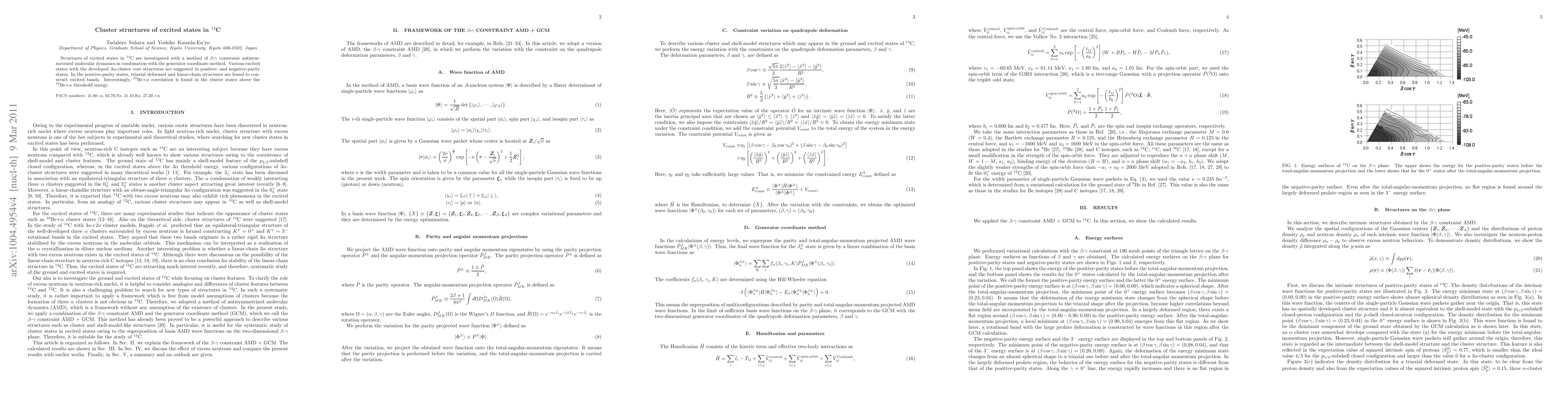 Researchers used a new method to study the structures of excited states in 14C, finding triaxial deformed and linear-chain structures that correlate with previously known 10Be + alpha correlations.