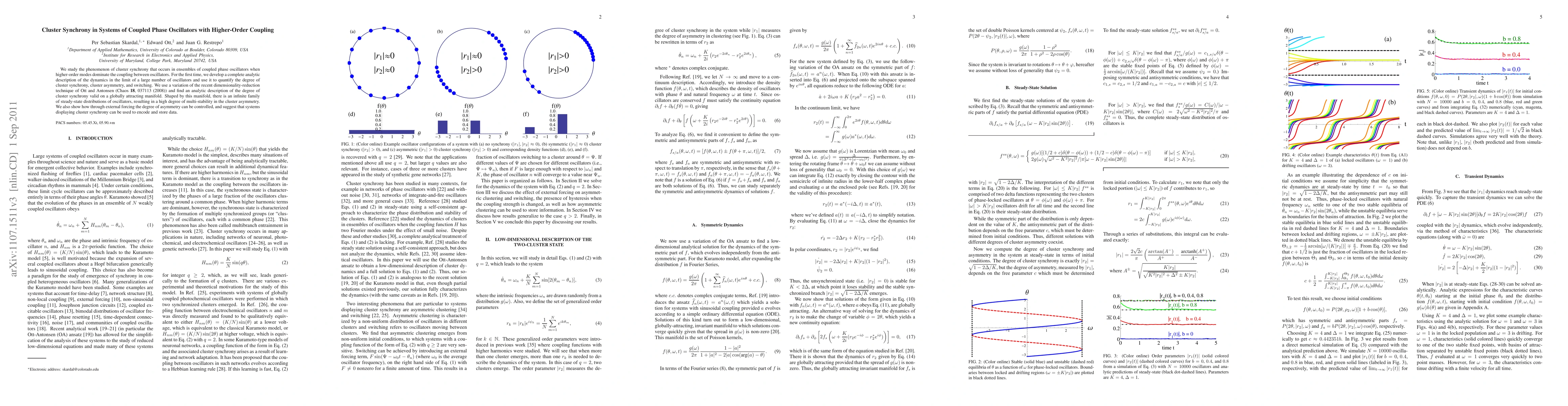 This paper develops an analytic framework for understanding cluster synchrony in large ensembles of coupled phase oscillators with higher-order coupling, revealing multi-stability and controllability via external forcing, and suggesting potential data encoding applications.