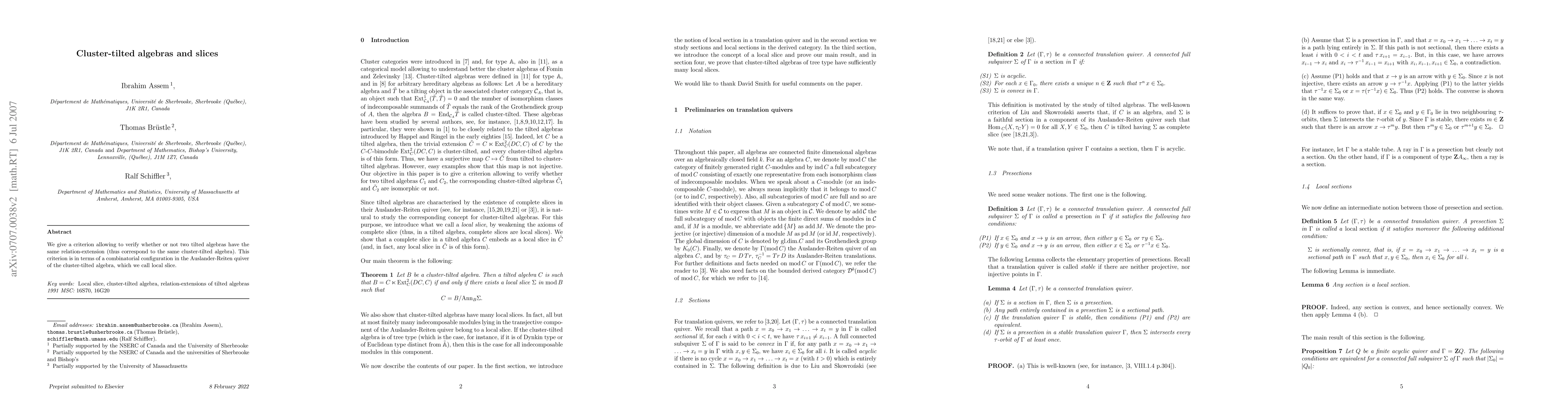 We give a criterion allowing to verify whether or not two tilted algebras have the same relation-extension (thus correspond to the same cluster-tilted algebra). This criterion is in terms of a combinatorial configuration in the Auslander-Reiten quiver of the cluster-tilted algebra, which we call local slice.