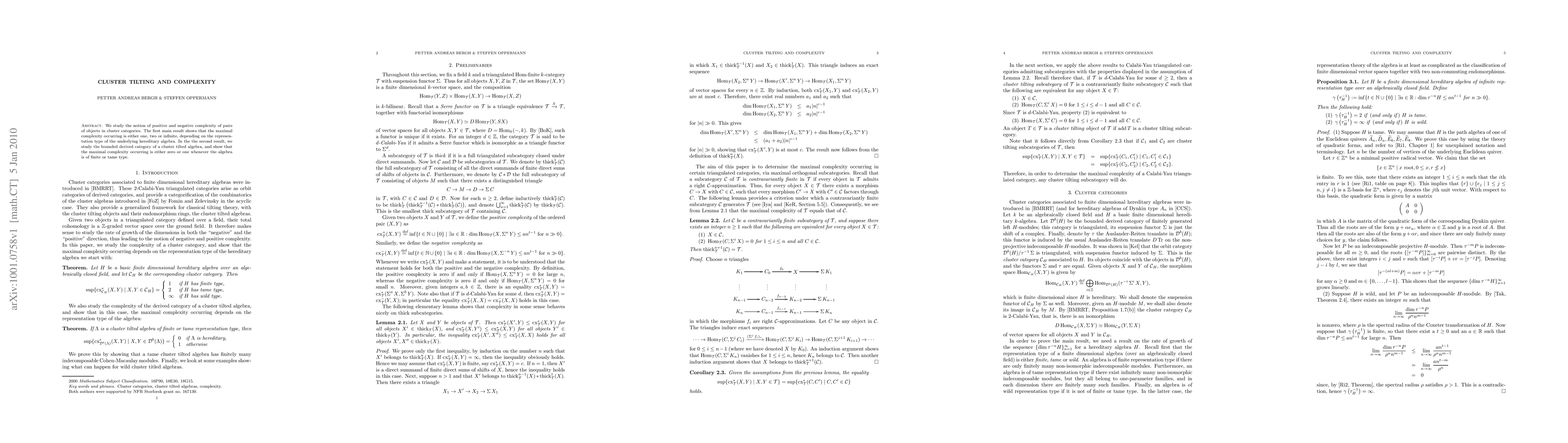 Research studies the complexity of cluster categories in algebra, finding that maximal complexity is one, two, or infinite, depending on the algebra type, with a second result showing bounded derived category complexity as zero or one for finite/tame algebras.