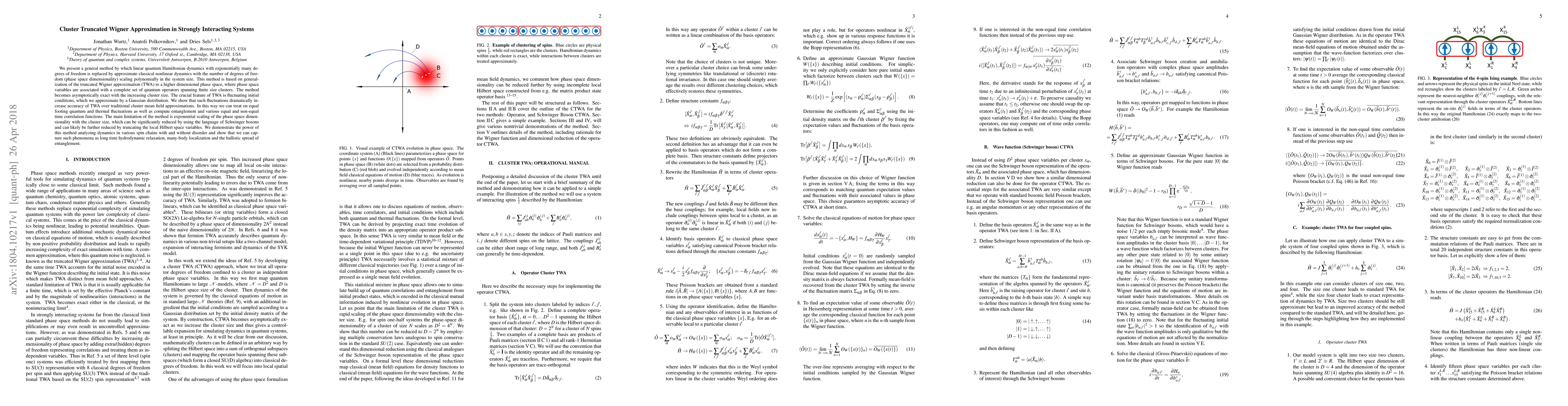 We present a general method by which linear quantum Hamiltonian dynamics with exponentially many degrees of freedom is replaced by approximate classical nonlinear dynamics with the number of degrees of freedom (phase space dimensionality) scaling polynomially in the system size. This method is based on generalization of the truncated Wigner approximation (TWA) to a higher dimensional phase space, where phase space variables are associated with a complete set of quantum operators spanning finite size clusters. The method becomes asymptotically exact with the increasing cluster size. The crucial feature of TWA is fluctuating initial conditions, which we approximate by a Gaussian distribution. We show that such fluctuations dramatically increase accuracy of TWA over traditional cluster mean field approximations. In this way we can treat on equal footing quantum and thermal fluctuations as well as compute entanglement and various equal and non-equal time correlation functions. The main limitation of the method is exponential scaling of the phase space dimensionality with the cluster size, which can be significantly reduced by using the language of Schwinger bosons and can likely be further reduced by truncating the local Hilbert space variables. We demonstrate the power of this method analyzing dynamics in various spin chains with and without disorder and show that we can capture such phenomena as long time hydrodynamic relaxation, many-body localization and the ballistic spread of entanglement.