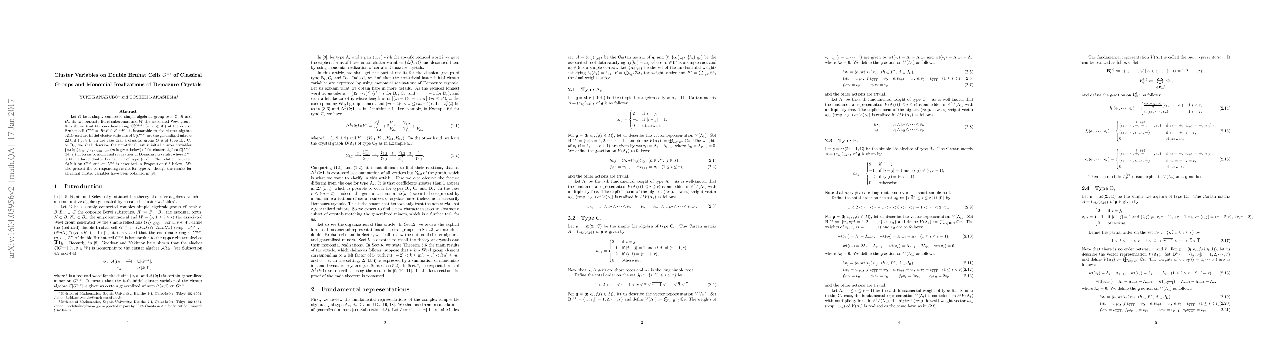 $\Delta(k;\textbf{i})$ by Berenstein, Fomin, Zelevinsky, Goodearl and Yakimov.