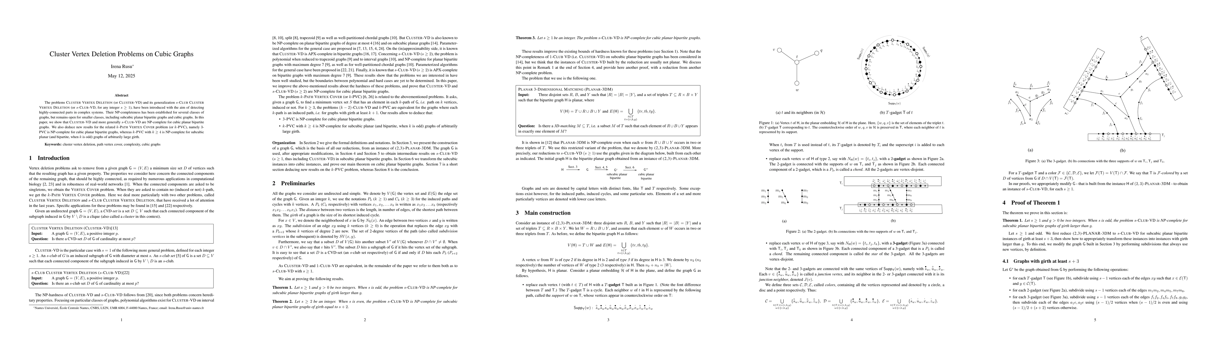 The research establishes NP-completeness for Cluster-VD and s-Club-VD on cubic planar bipartite graphs, utilizing complex graph theory and computational techniques.