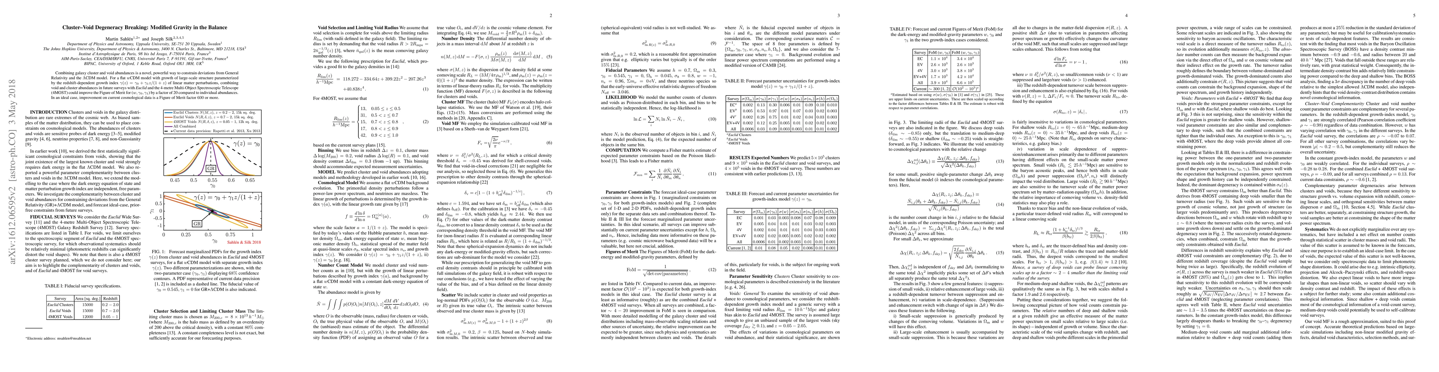 Combining galaxy cluster and void abundances is a novel, powerful way to constrain deviations from General Relativity and the $\Lambda$CDM model. For a flat $w$CDM model with growth of large-scale structure parameterized by the redshift-dependent growth index $\gamma(z) = \gamma_0 + \gamma_1 z/(1+z)$ of linear matter perturbations, combining void and cluster abundances in future surveys with Euclid and the 4-metre Multi-Object Spectroscopic Telescope (4MOST) could improve the Figure of Merit for ($w, \gamma_0, \gamma_1$) by a factor of 20 compared to individual abundances. In an ideal case, improvement on current cosmological data is a Figure of Merit factor $600$ or more.