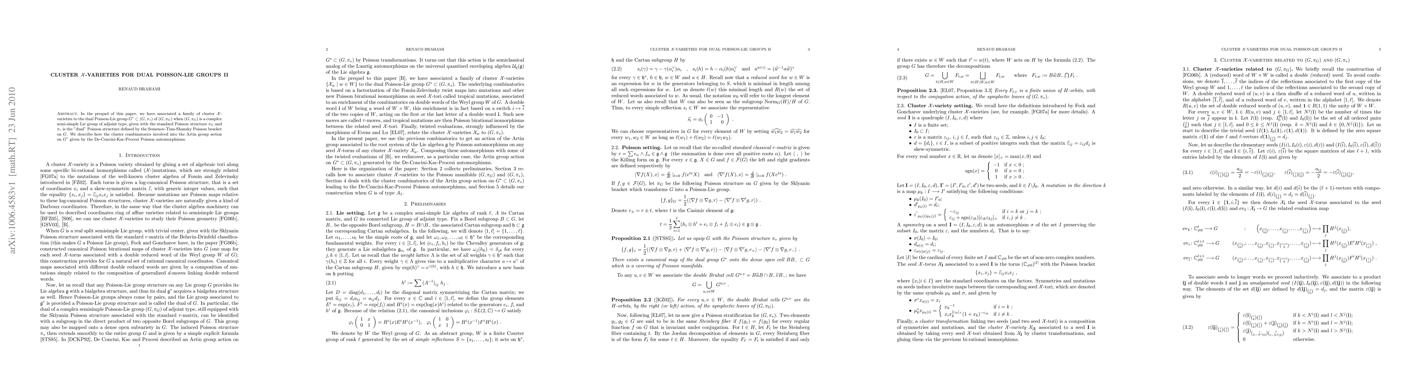This paper explores cluster X-varieties associated with dual Poisson-Lie groups of complex semi-simple Lie groups, focusing on the cluster combinatorics of Artin group actions via De-Concini-Kac-Procesi Poisson automorphisms. The study builds on the foundational work presented in the prequel, expanding the understanding of the structure and dynamics of these dual Poisson-Lie groups.