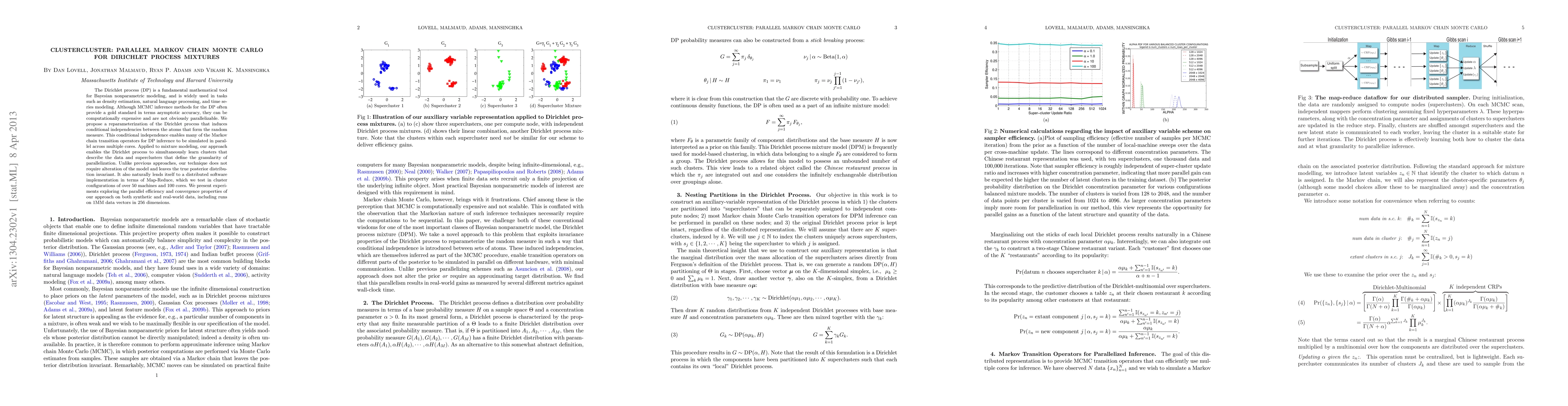This paper proposes a parallel Markov Chain Monte Carlo (MCMC) method for Dirichlet Process mixtures, introducing a reparameterization that enables parallel simulation of transition operators. The approach maintains the true posterior distribution and is tested on large datasets, demonstrating efficient parallelization and scalability.