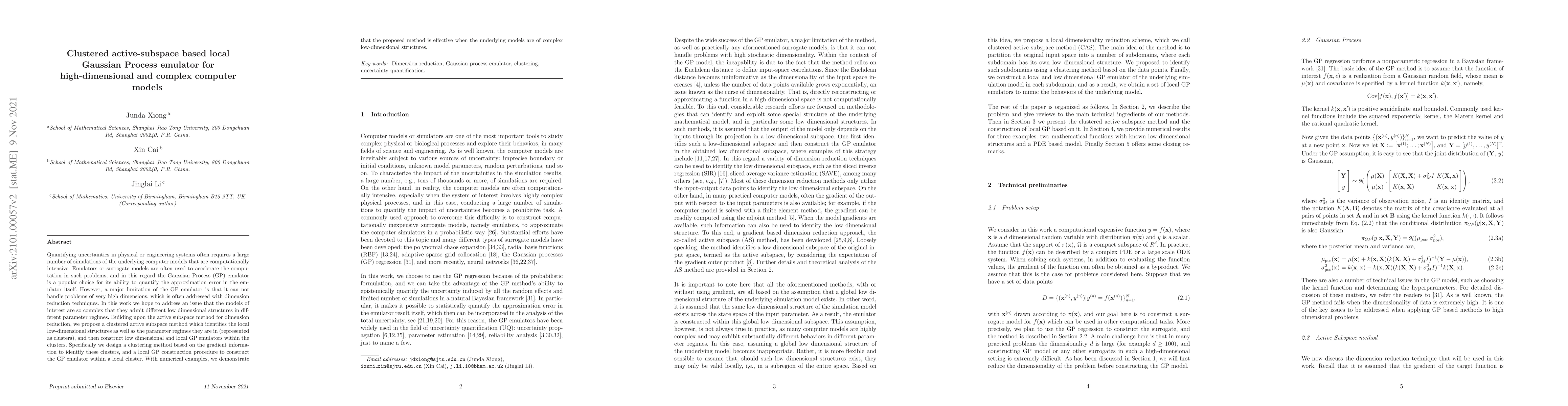 This paper proposes a clustered active-subspace based local Gaussian Process emulator to handle high-dimensional and complex computer models. It introduces a method to identify local low-dimensional structures and parameter regimes, constructing localized GP emulators within these clusters to improve computational efficiency.