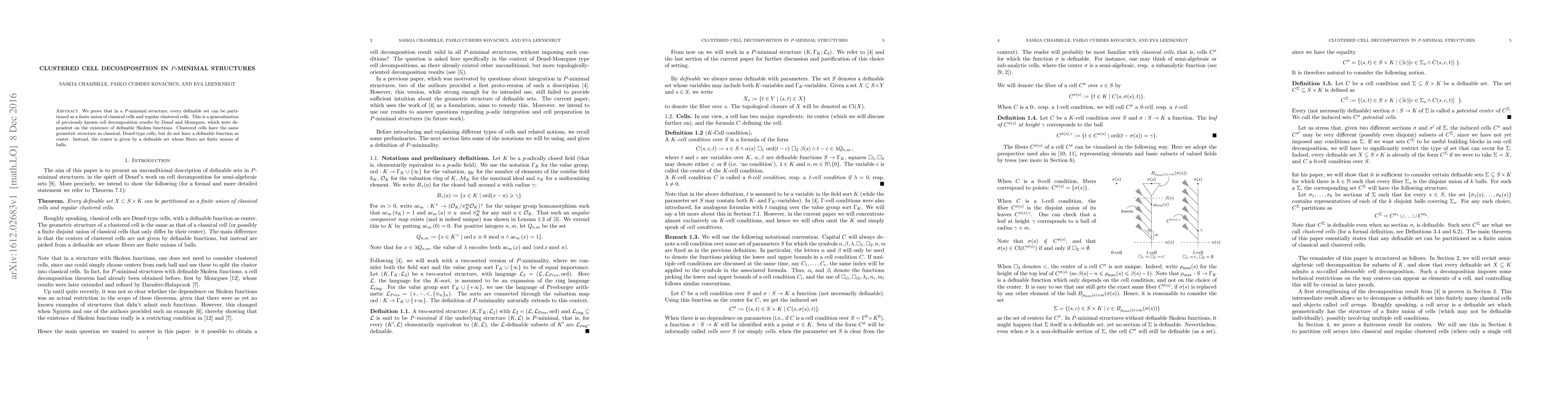 In $P$-minimal structures, every definable set can be decomposed into a finite union of classical cells and regular clustered cells, generalizing prior cell decomposition results. Unlike classical cells, clustered cells lack a definable center but are defined by a set with fibers of finite unions of balls.
