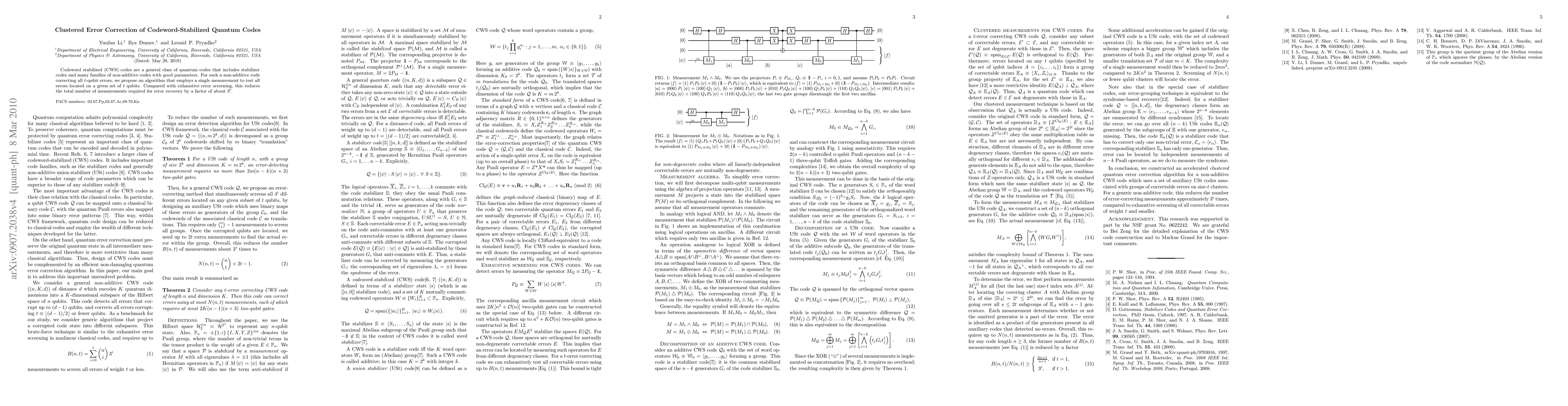 This paper proposes an efficient algorithm for clustered error correction in codeword-stabilized quantum codes, reducing the number of measurements required by a factor of approximately 3^t compared to exhaustive error screening, thereby enhancing error recovery efficiency.