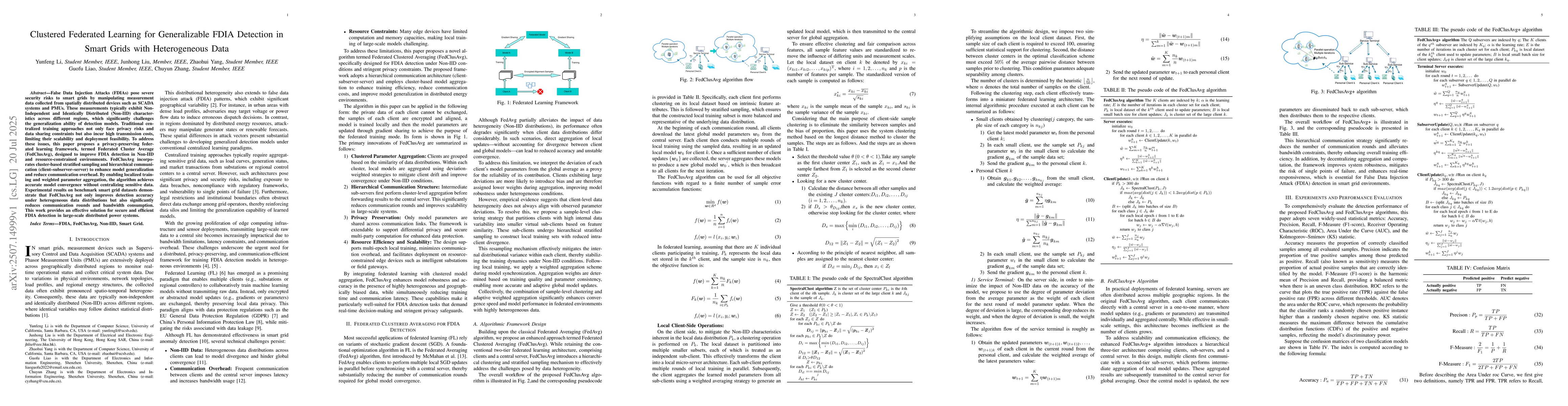 False Data Injection Attacks (FDIAs) pose severe security risks to smart grids by manipulating measurement data collected from spatially distributed devices such as SCADA systems and PMUs. These measurements typically exhibit Non-Independent and Identically Distributed (Non-IID) characteristics across different regions, which significantly challenges the generalization ability of detection models. Traditional centralized training approaches not only face privacy risks and data sharing constraints but also incur high transmission costs, limiting their scalability and deployment feasibility. To address these issues, this paper proposes a privacy-preserving federated learning framework, termed Federated Cluster Average (FedClusAvg), designed to improve FDIA detection in Non-IID and resource-constrained environments. FedClusAvg incorporates cluster-based stratified sampling and hierarchical communication (client-subserver-server) to enhance model generalization and reduce communication overhead. By enabling localized training and weighted parameter aggregation, the algorithm achieves accurate model convergence without centralizing sensitive data. Experimental results on benchmark smart grid datasets demonstrate that FedClusAvg not only improves detection accuracy under heterogeneous data distributions but also significantly reduces communication rounds and bandwidth consumption. This work provides an effective solution for secure and efficient FDIA detection in large-scale distributed power systems.