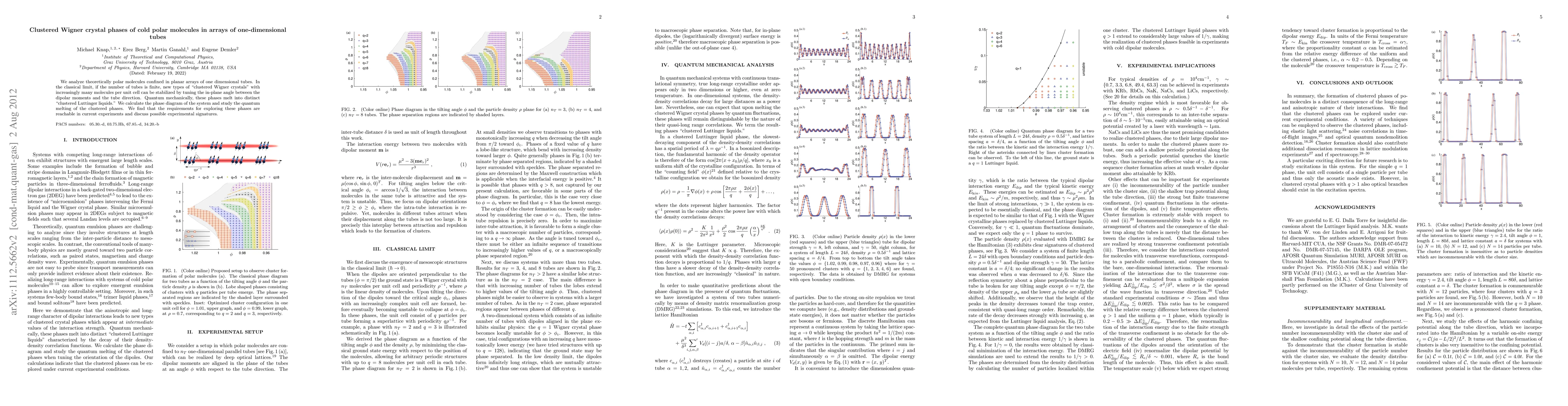 This paper theoretically investigates polar molecules in one-dimensional tubes, revealing new "clustered Wigner crystal" phases in classical systems, which transition to "clustered Luttinger liquids" quantum mechanically. The study maps out the phase diagram and suggests feasible experimental conditions and signatures for observing these phases.