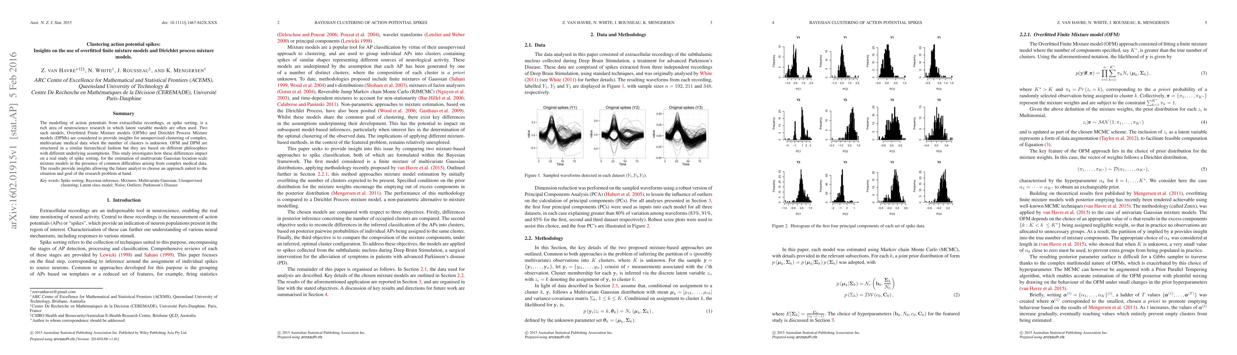 The modelling of action potentials from extracellular recordings, or spike sorting, is a rich area of neuroscience research in which latent variable models are often used. Two such models, Overfitted Finite Mixture models (OFMs) and Dirichlet Process Mixture models (DPMs) are considered to provide insights for unsupervised clustering of complex, multivariate medical data when the number of clusters is unknown. OFM and DPM are structured in a similar hierarchical fashion but they are based on different philosophies with different underlying assumptions. This study investigates how these differences impact on a real study of spike sorting, for the estimation of multivariate Gaussian location-scale mixture models in the presence of common difficulties arising from complex medical data. The results provide insights allowing the future analyst to choose an approach suited to the situation and goal of the research problem at hand.
