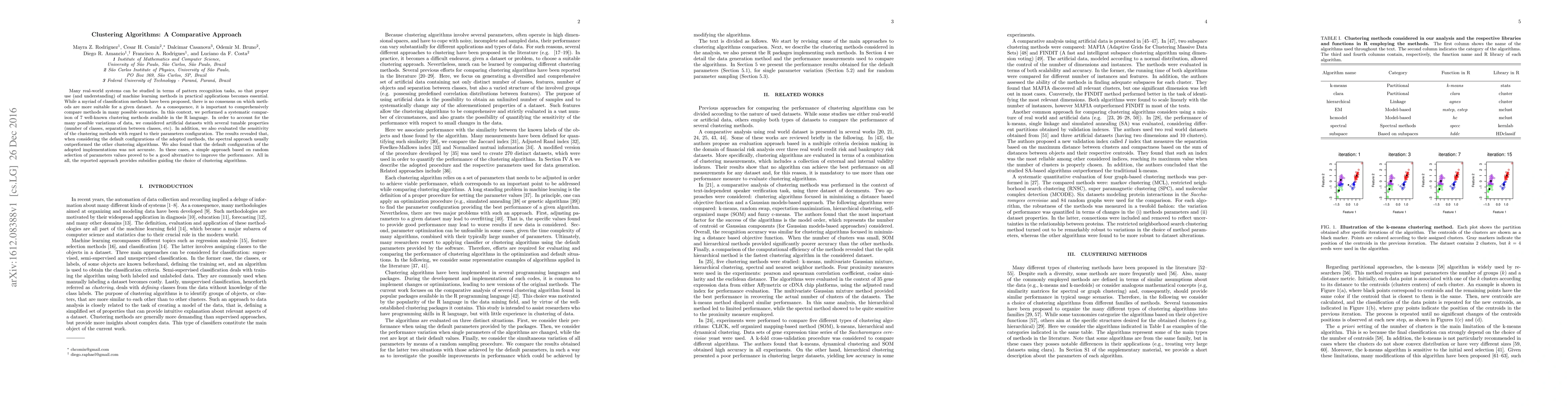 Many real-world systems can be studied in terms of pattern recognition tasks, so that proper use (and understanding) of machine learning methods in practical applications becomes essential. While a myriad of classification methods have been proposed, there is no consensus on which methods are more suitable for a given dataset. As a consequence, it is important to comprehensively compare methods in many possible scenarios. In this context, we performed a systematic comparison of 7 well-known clustering methods available in the R language. In order to account for the many possible variations of data, we considered artificial datasets with several tunable properties (number of classes, separation between classes, etc). In addition, we also evaluated the sensitivity of the clustering methods with regard to their parameters configuration. The results revealed that, when considering the default configurations of the adopted methods, the spectral approach usually outperformed the other clustering algorithms. We also found that the default configuration of the adopted implementations was not accurate. In these cases, a simple approach based on random selection of parameters values proved to be a good alternative to improve the performance. All in all, the reported approach provides subsidies guiding the choice of clustering algorithms.