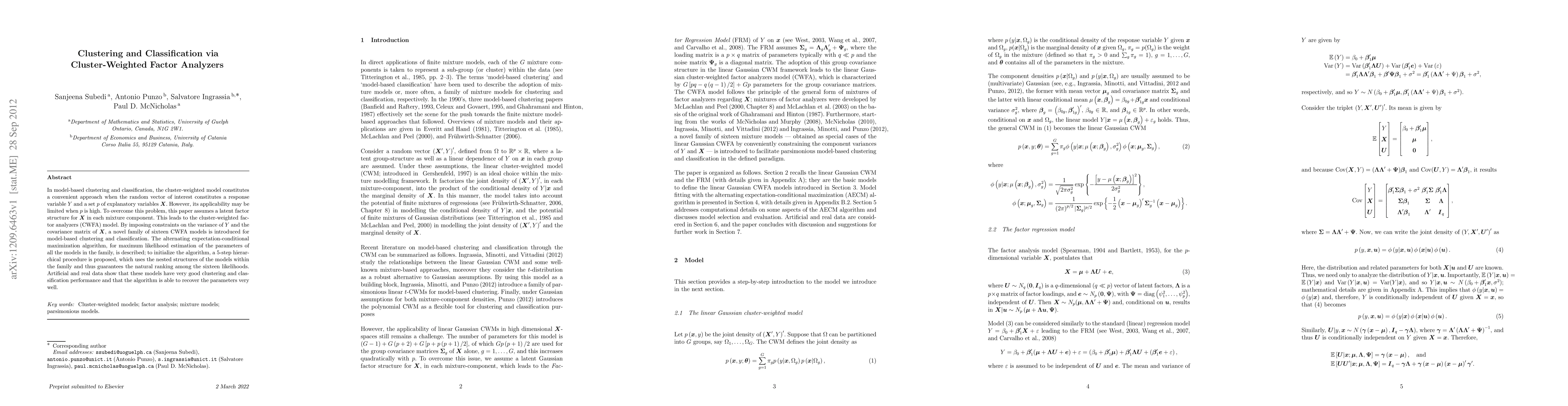 This paper proposes the cluster-weighted factor analyzers (CWFA) model for model-based clustering and classification, addressing high-dimensional explanatory variables by incorporating latent factor structures. It introduces a novel family of sixteen CWFA models and an alternating algorithm for parameter estimation, demonstrating effective clustering and classification performance on both artificial and real datasets.