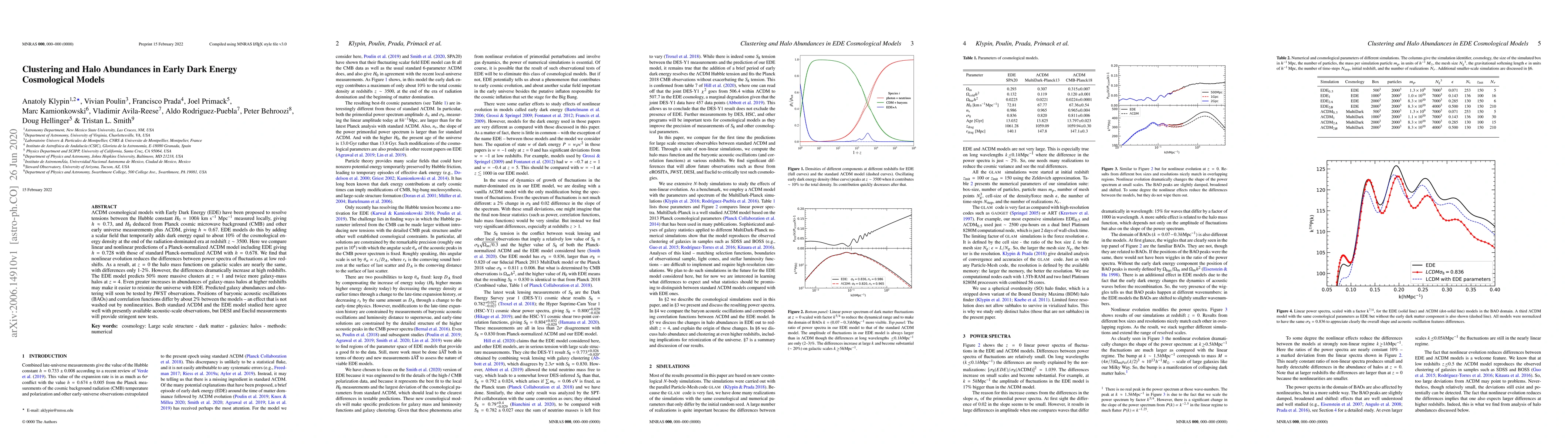 This paper compares the clustering and halo abundances of LCDM cosmological models with Early Dark Energy (EDE) to standard LCDM models, finding that EDE models predict significantly more massive clusters and galaxy-mass halos at high redshifts, potentially aiding reionization and offering new tests for future surveys like JWST, DESI, and Euclid.