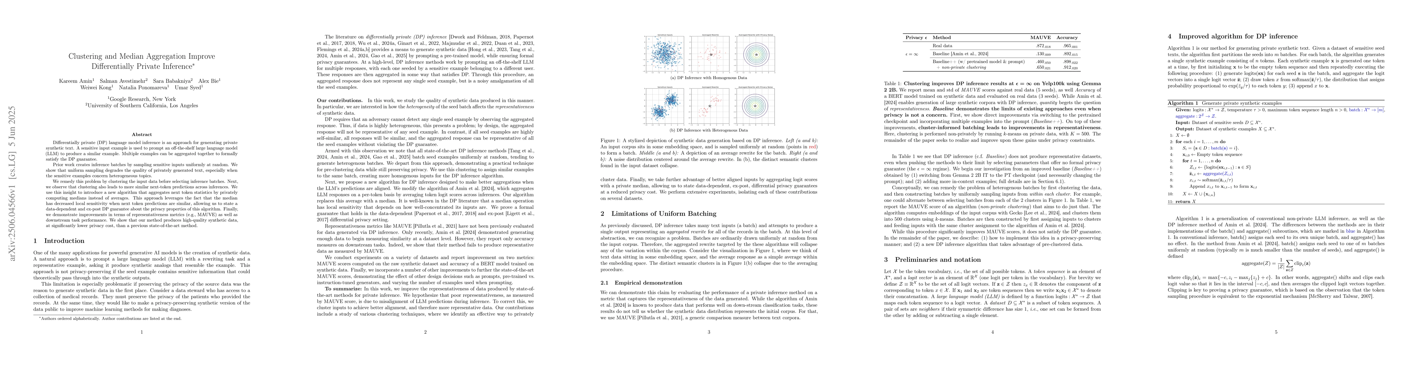 This research paper improves differentially private language model inference by clustering input data and using median aggregation instead of averages, resulting in high-quality synthetic data at lower privacy costs.