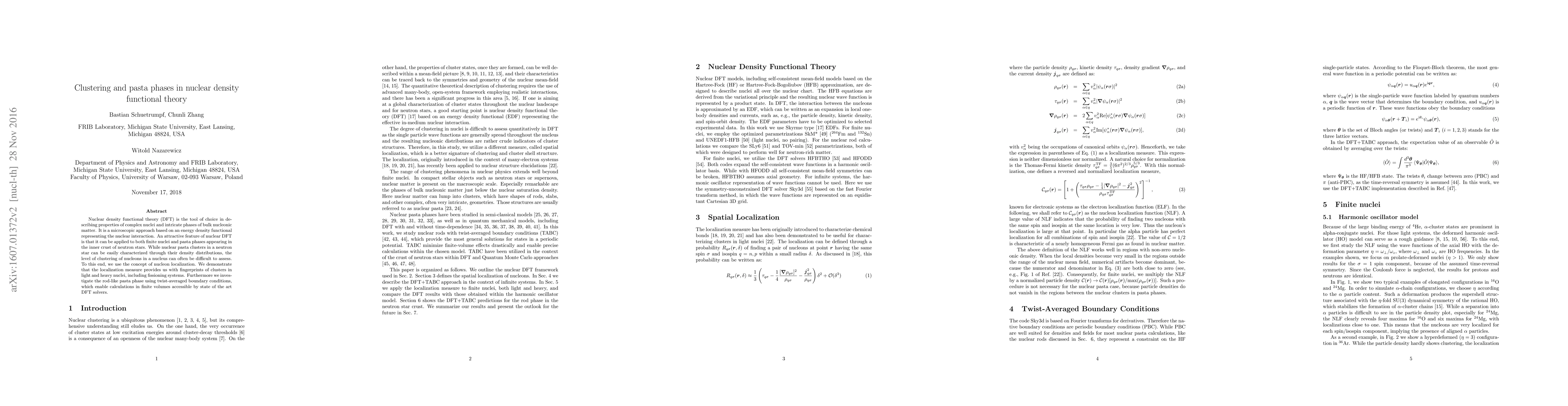 This paper explores nuclear density functional theory (DFT) to characterize clustering in both finite nuclei and the pasta phases in neutron stars. It introduces a nucleonic localization measure to identify clusters in various nuclei, including fissioning systems, and investigates rod-like pasta phases using twist-averaged boundary conditions.