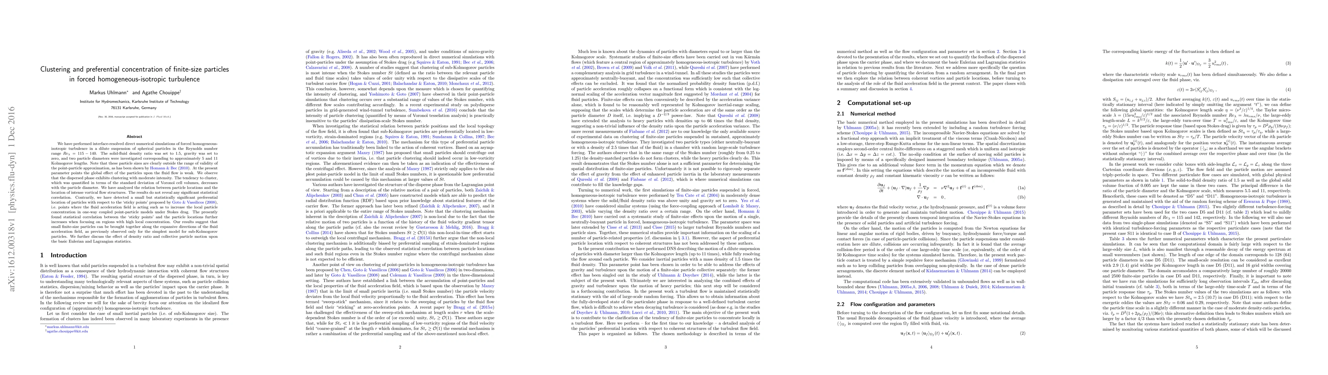 This study uses direct numerical simulations to investigate clustering and preferential concentration of finite-size particles in forced homogeneous-isotropic turbulence, finding that particles cluster moderately and show a small but statistically significant tendency to locate near "sticky points" where fluid acceleration increases local particle concentration. The effect is more pronounced in regions of high local particle concentration.