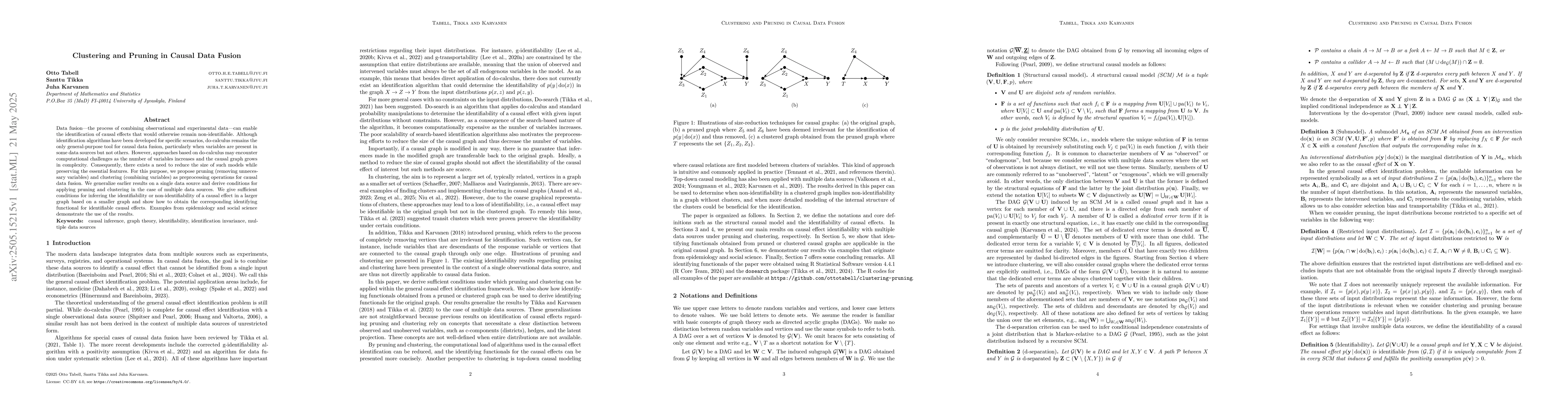 The research proposes pruning (removing unnecessary variables) and clustering (combining variables) as preprocessing operations for causal data fusion, generalizing earlier results for single data sources to multiple data sources. It derives conditions for applying pruning and clustering and provides sufficient conditions for inferring identifiability or non-identifiability of causal effects in larger graphs based on smaller graphs.