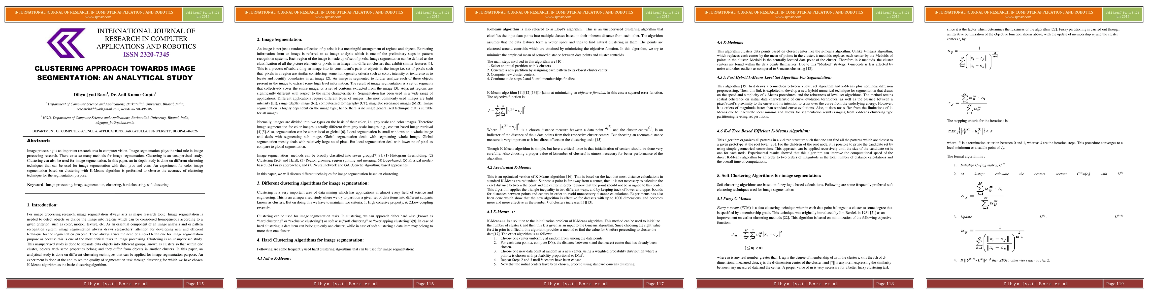 A novel approach to image segmentation using fuzzy clustering algorithms is presented, which improves the robustness and accuracy of traditional methods.