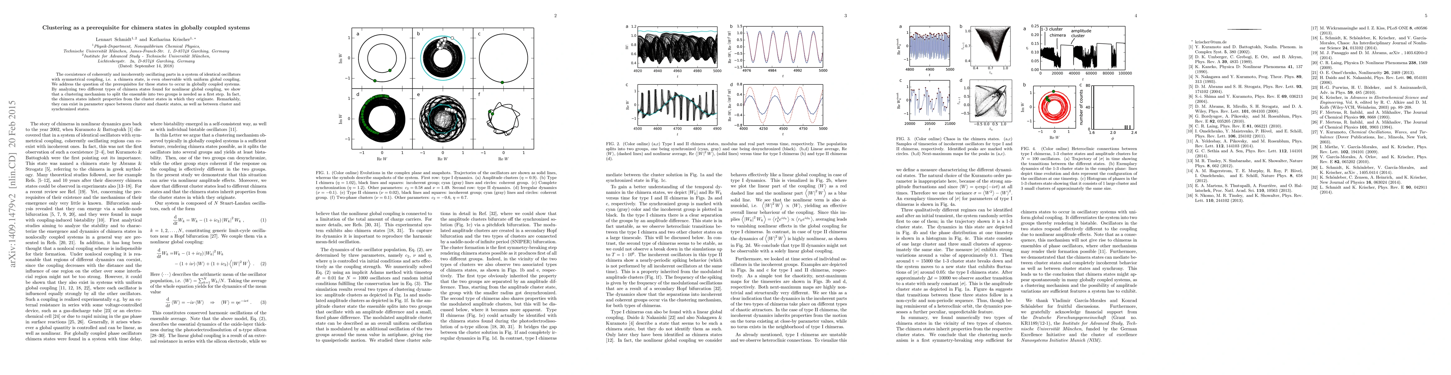 This paper investigates the prerequisites for chimera states in globally coupled systems, revealing that clustering is essential to form these states. It demonstrates that chimera states emerge from cluster states and can exist in parameter spaces between cluster and chaotic or synchronized states.