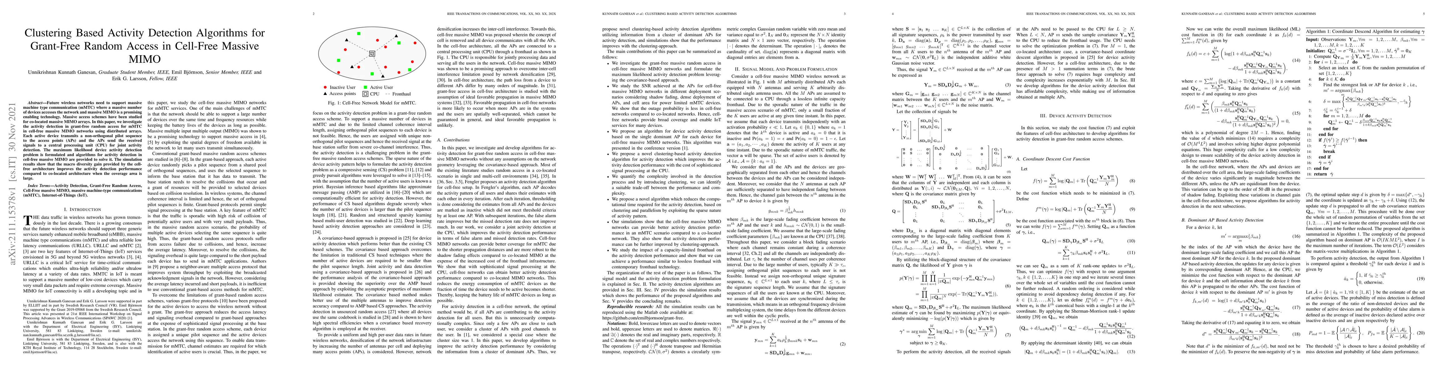This paper proposes clustering-based activity detection algorithms for grant-free random access in cell-free massive MIMO networks, leveraging the macro-diversity gain to enhance performance over large coverage areas compared to co-located architectures. Simulation results demonstrate improved detection efficiency through the distributed array setup.
