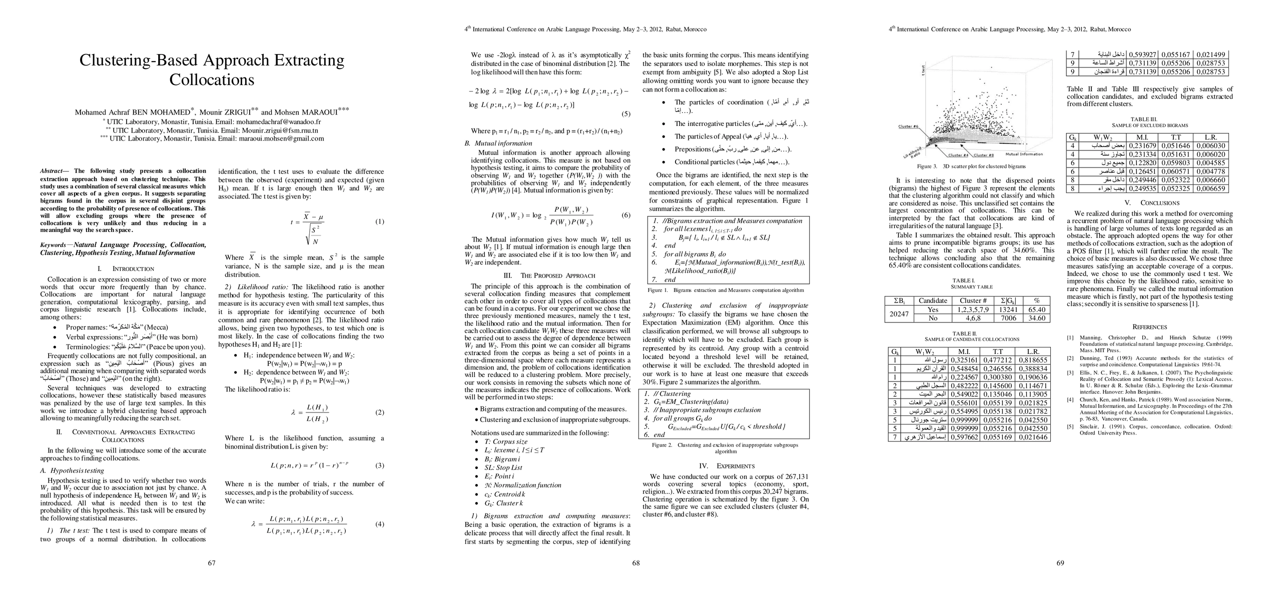 The following study presents a collocation extraction approach based on clustering technique. This study uses a combination of several classical measures which cover all aspects of a given corpus then it suggests separating bigrams found in the corpus in several disjoint groups according to the probability of presence of collocations. This will allow excluding groups where the presence of collocations is very unlikely and thus reducing in a meaningful way the search space.