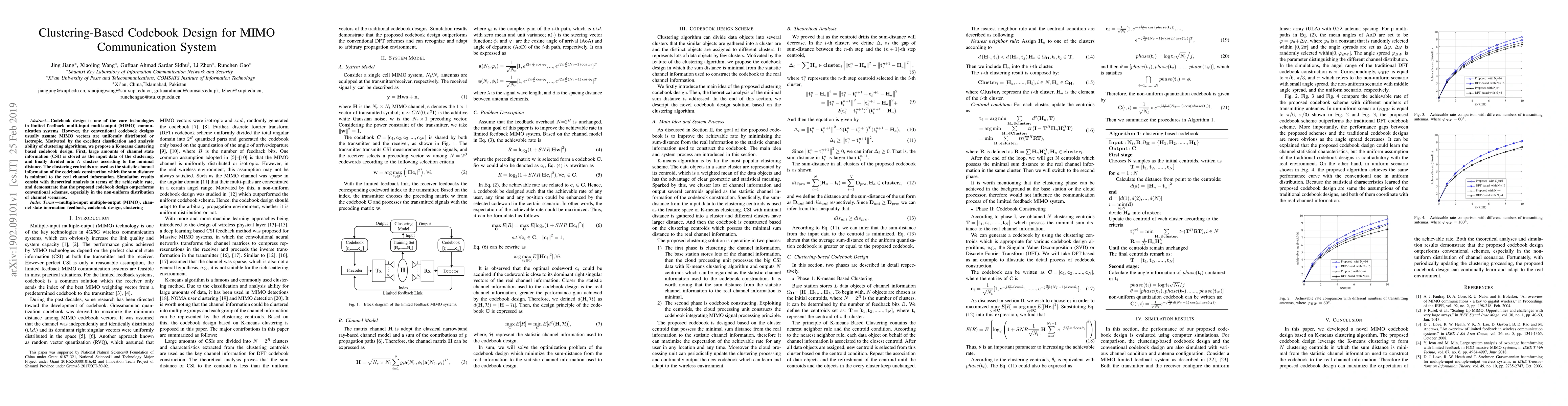 This paper proposes a K-means clustering-based codebook design for MIMO communication systems, utilizing stored channel state information (CSI) to form clusters. The clustering centroids serve as the codebook, optimizing the achievable rate and outperforming conventional methods, especially in non-uniform channel scenarios.