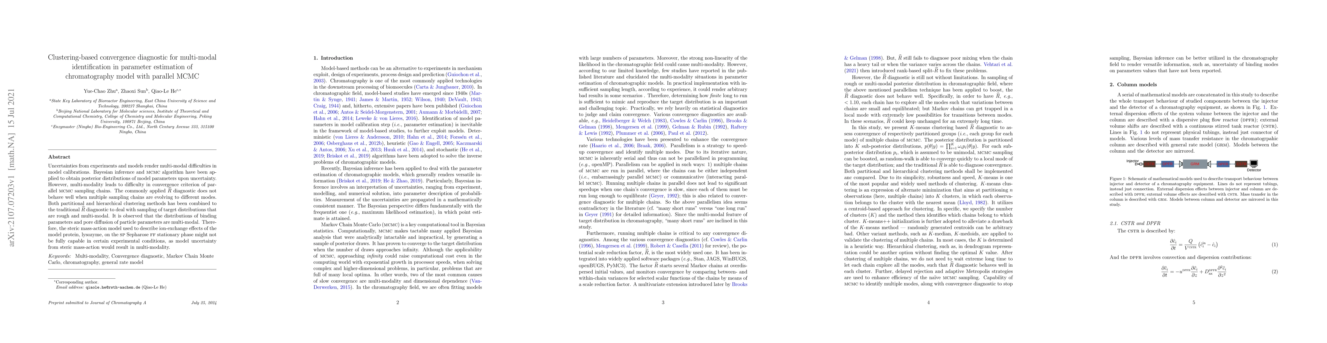 Researchers developed a new diagnostic tool to help MCMC algorithms converge in multi-modal simulations of chromatography models, addressing challenges in model calibration due to experimental uncertainties. The method combines clustering with traditional diagnostics to identify optimal convergence criteria for improved model accuracy.