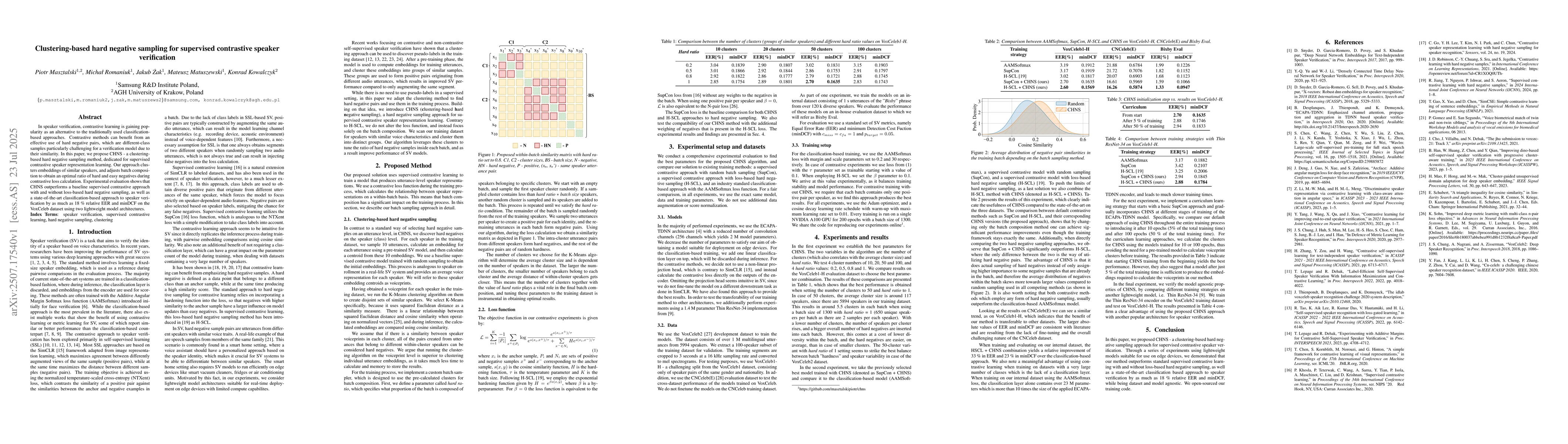 In speaker verification, contrastive learning is gaining popularity as an alternative to the traditionally used classification-based approaches. Contrastive methods can benefit from an effective use of hard negative pairs, which are different-class samples particularly challenging for a verification model due to their similarity. In this paper, we propose CHNS - a clustering-based hard negative sampling method, dedicated for supervised contrastive speaker representation learning. Our approach clusters embeddings of similar speakers, and adjusts batch composition to obtain an optimal ratio of hard and easy negatives during contrastive loss calculation. Experimental evaluation shows that CHNS outperforms a baseline supervised contrastive approach with and without loss-based hard negative sampling, as well as a state-of-the-art classification-based approach to speaker verification by as much as 18 % relative EER and minDCF on the VoxCeleb dataset using two lightweight model architectures.
