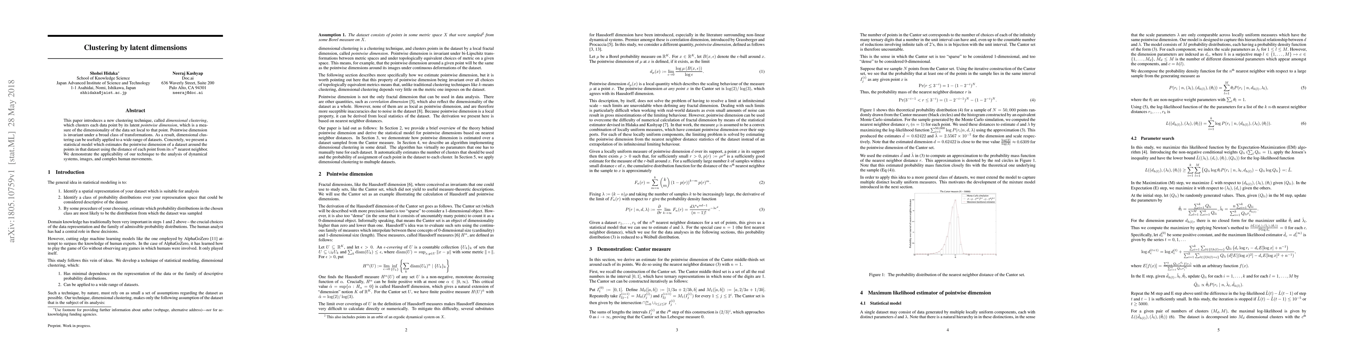 This paper introduces a new clustering technique, called {\em dimensional clustering}, which clusters each data point by its latent {\em pointwise dimension}, which is a measure of the dimensionality of the data set local to that point. Pointwise dimension is invariant under a broad class of transformations. As a result, dimensional clustering can be usefully applied to a wide range of datasets. Concretely, we present a statistical model which estimates the pointwise dimension of a dataset around the points in that dataset using the distance of each point from its $n^{\text{th}}$ nearest neighbor. We demonstrate the applicability of our technique to the analysis of dynamical systems, images, and complex human movements.
