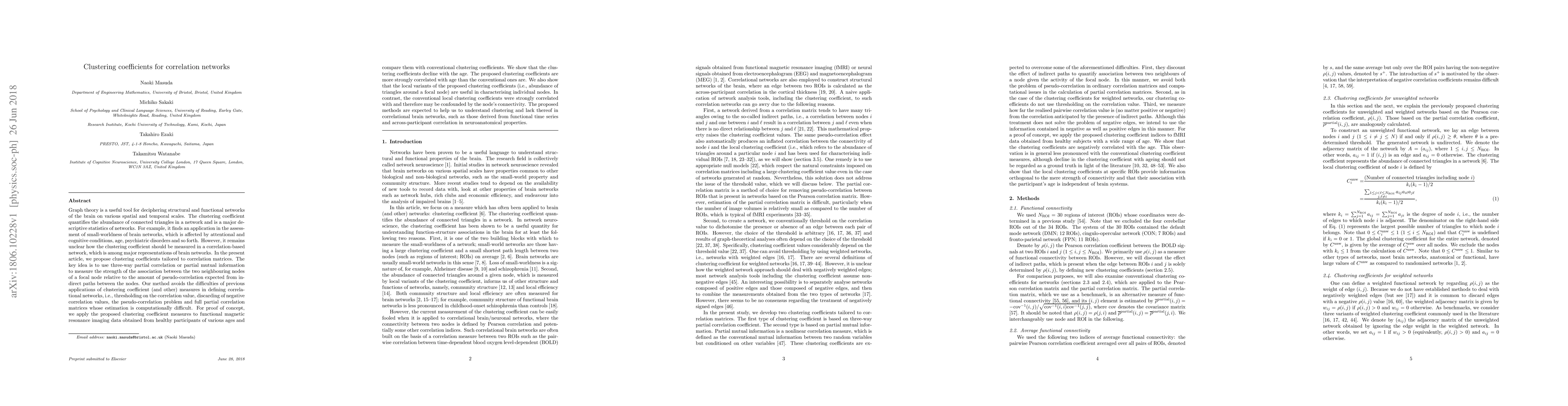 The paper introduces new clustering coefficient measures based on three-way partial correlation, addressing previous challenges in defining correlational networks.