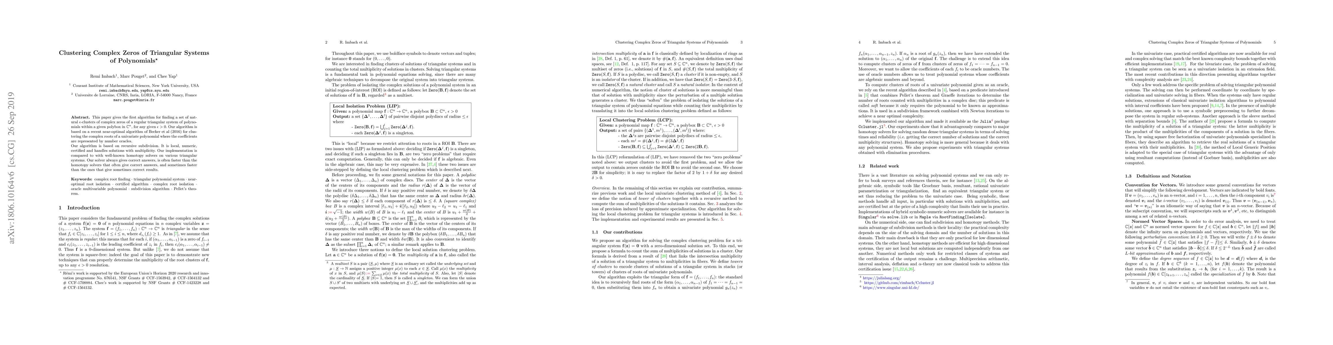This paper gives the first algorithm for finding a set of natural $\epsilon$-clusters of complex zeros of a triangular system of polynomials within a given polybox in $\mathbb{C}^n$, for any given $\epsilon>0$. Our algorithm is based on a recent near-optimal algorithm of Becker et al (2016) for clustering the complex roots of a univariate polynomial where the coefficients are represented by number oracles. Our algorithm is numeric, certified and based on subdivision. We implemented it and compared it with two well-known homotopy solvers on various triangular systems. Our solver always gives correct answers, is often faster than the homotopy solver that often gives correct answers, and sometimes faster than the one that gives sometimes correct results.