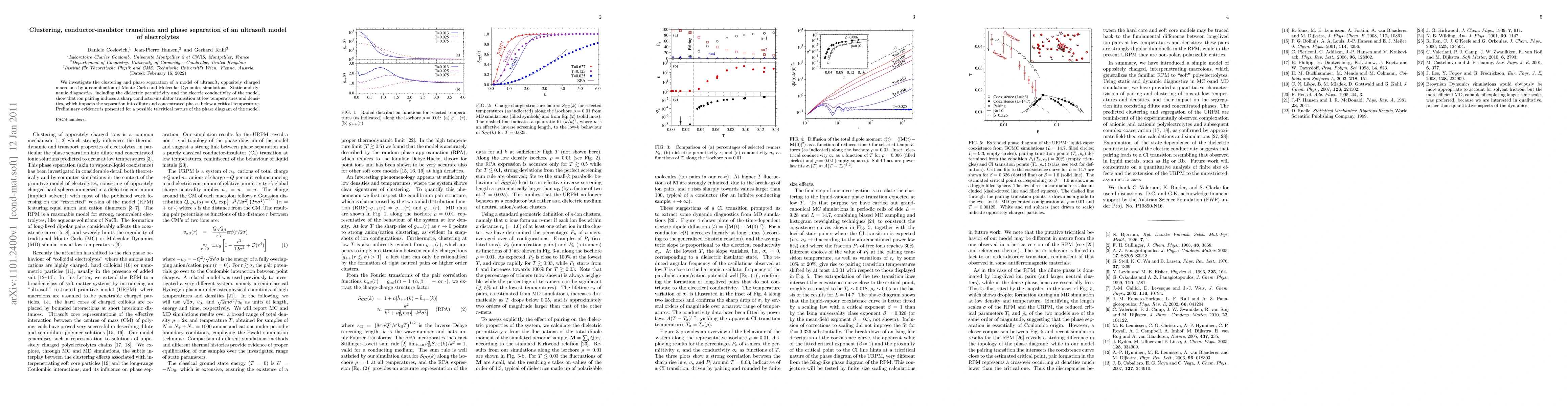 We investigate the clustering and phase separation of a model of ultrasoft, oppositely charged macroions by a combination of Monte Carlo and Molecular Dynamics simulations. Static and dynamic diagnostics, including the dielectric permittivity and the electric conductivity of the model, show that ion pairing induces a sharp conductor-insulator transition at low temperatures and densities, which impacts the separation into dilute and concentrated phases below a critical temperature. Preliminary evidence is presented for a possible tricritical nature of the phase diagram of the model.