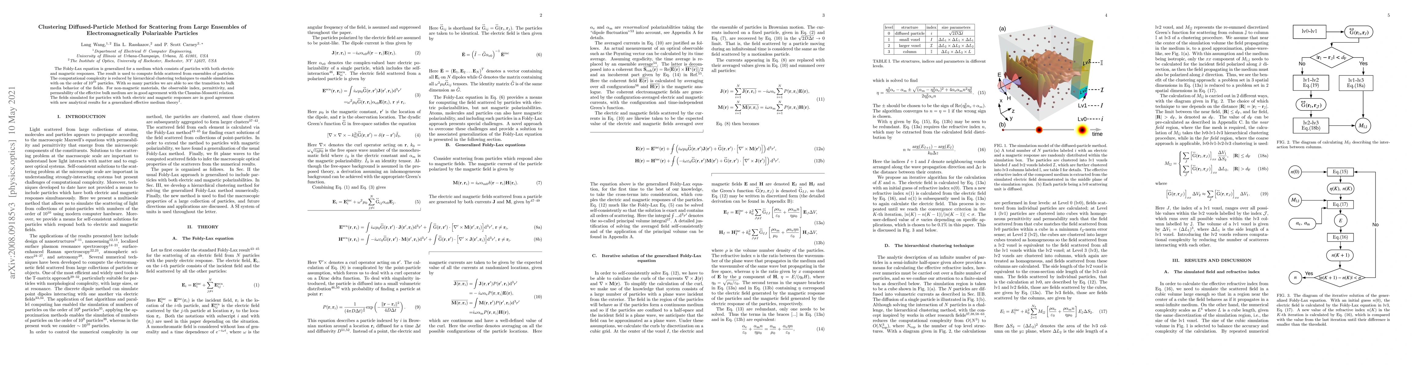 The Foldy-Lax equation is generalized for a medium which consists of particles with both electric and magnetic responses. The result is used to compute fields scattered from ensembles of particles. The computational complexity is reduced by hierarchical clustering techniques to enable simulations with on the order of 10^10 particles. With so many particles we are able to see the transition to bulk media behavior of the fields. For non-magnetic materials, the observable index, permittivity, and permeability of the effective bulk medium are in good agreement with the Clausius-Mossotti relation. The fields simulated for particles with both electric and magnetic responses are in good agreement with new analytical results for a generalized effective medium theory.