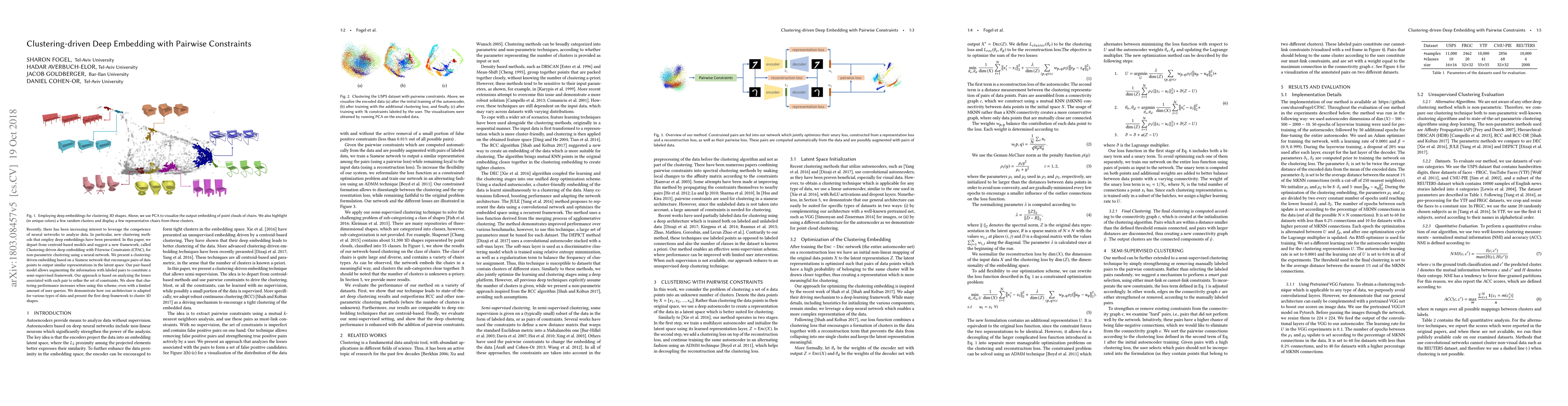 Recently, there has been increasing interest to leverage the competence of neural networks to analyze data. In particular, new clustering methods that employ deep embeddings have been presented. In this paper, we depart from centroid-based models and suggest a new framework, called Clustering-driven deep embedding with PAirwise Constraints (CPAC), for non-parametric clustering using a neural network. We present a clustering-driven embedding based on a Siamese network that encourages pairs of data points to output similar representations in the latent space. Our pair-based model allows augmenting the information with labeled pairs to constitute a semi-supervised framework. Our approach is based on analyzing the losses associated with each pair to refine the set of constraints. We show that clustering performance increases when using this scheme, even with a limited amount of user queries. We demonstrate how our architecture is adapted for various types of data and present the first deep framework to cluster 3D shapes.