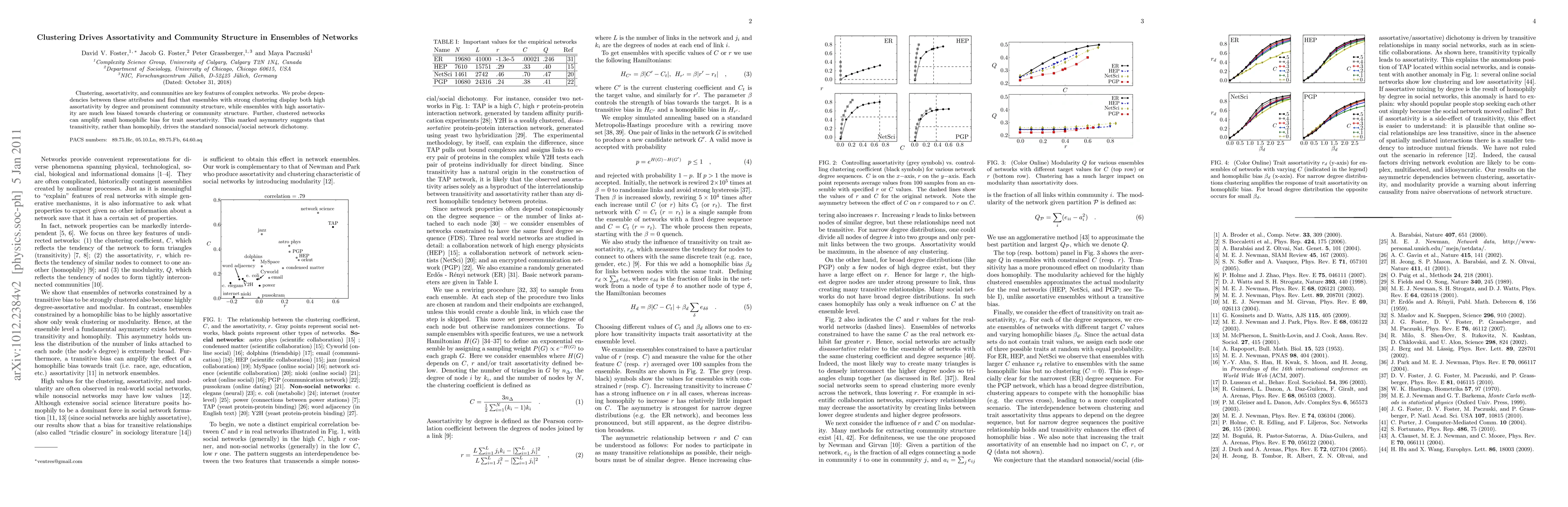 This study reveals that strong clustering in network ensembles leads to high assortativity by degree and prominent community structures, while high assortativity does not necessarily imply strong clustering or community formation. The findings suggest that transitivity, rather than homophily, is the primary driver of the social/nonsocial network distinction.