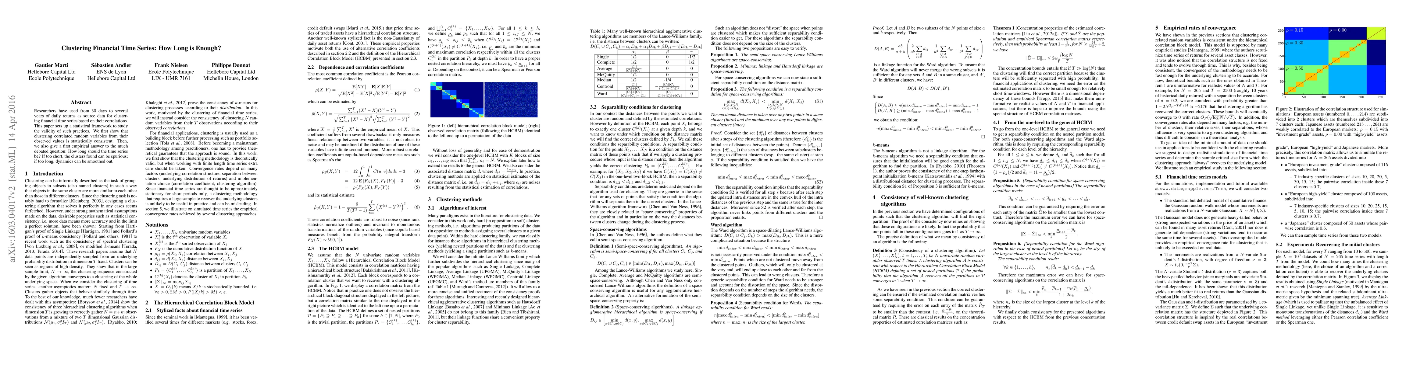 Researchers have used from 30 days to several years of daily returns as source data for clustering financial time series based on their correlations. This paper sets up a statistical framework to study the validity of such practices. We first show that clustering correlated random variables from their observed values is statistically consistent. Then, we also give a first empirical answer to the much debated question: How long should the time series be? If too short, the clusters found can be spurious; if too long, dynamics can be smoothed out.