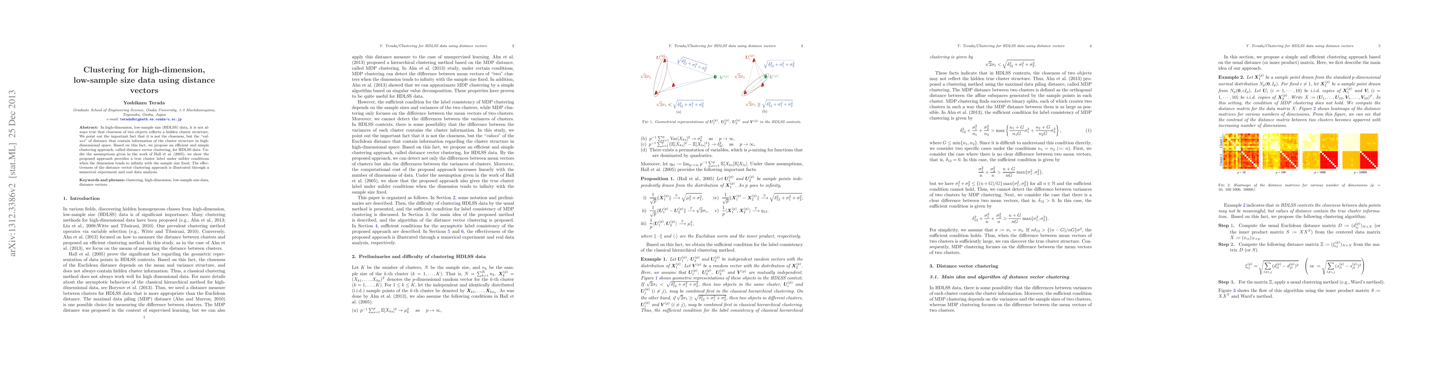 The paper proposes a novel clustering method called distance vector clustering for high-dimension, low-sample size data, emphasizing that distance values, not mere closeness, reveal cluster structures. The method outperforms existing approaches under certain assumptions, as demonstrated by numerical experiments and real data analysis.