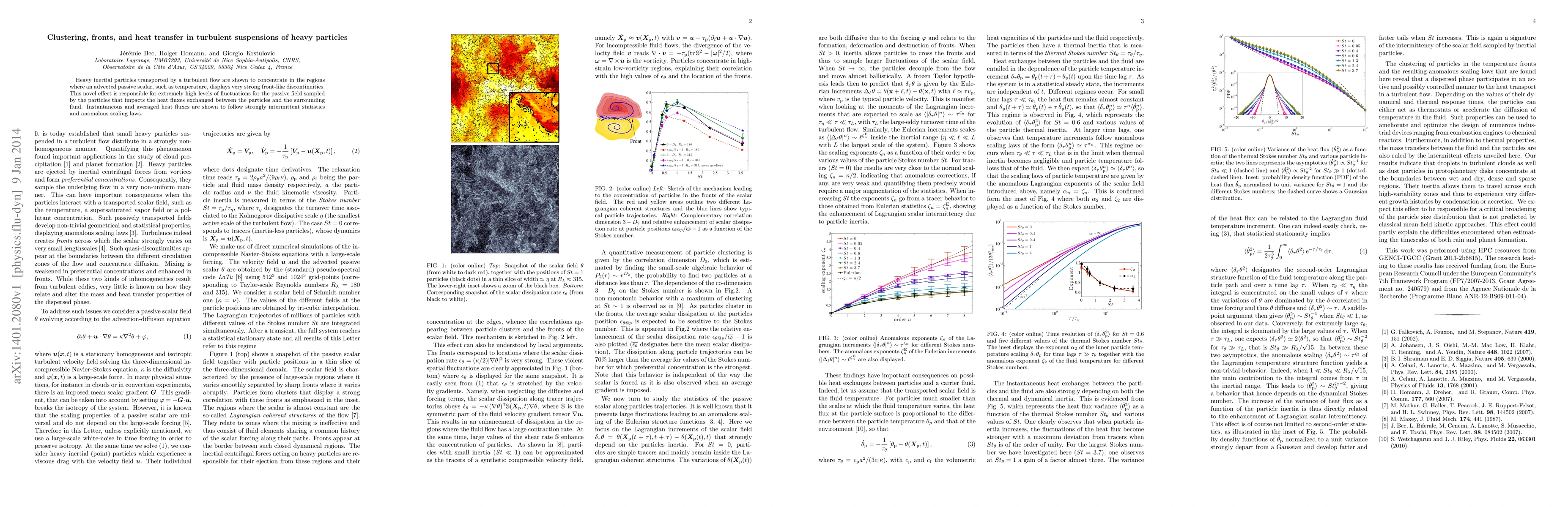Summary: Heavy inertial particles in turbulent flows concentrate in regions of strong front-like temperature discontinuities, leading to high fluctuations in heat transfer and following intermittent statistics and anomalous scaling laws.