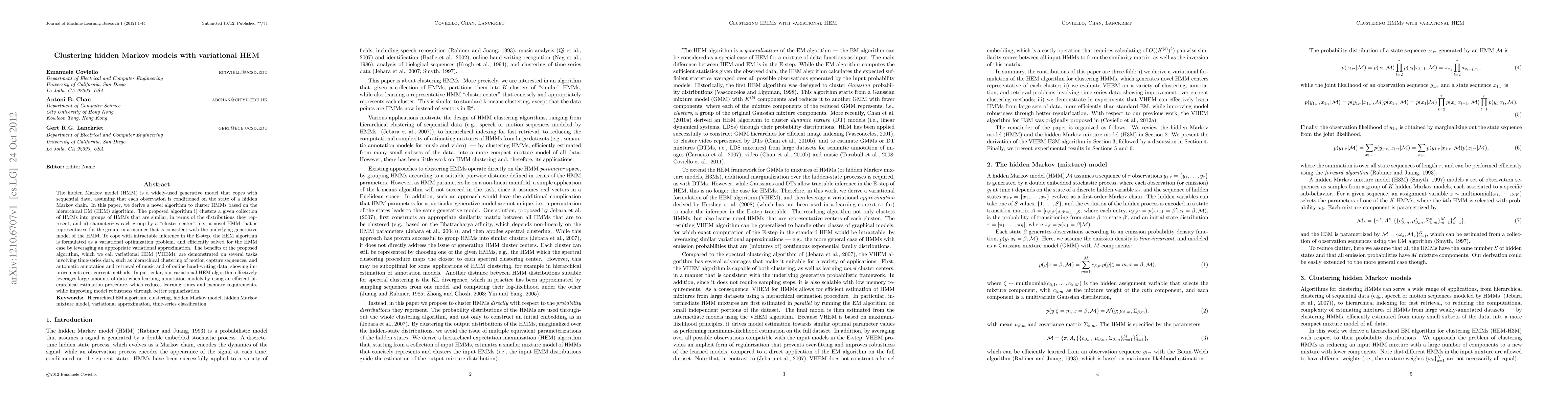 Researchers developed a novel algorithm to cluster hidden Markov models using variational hierarchical EM, improving model robustness and reducing learning times for tasks like motion capture sequences and music annotation.