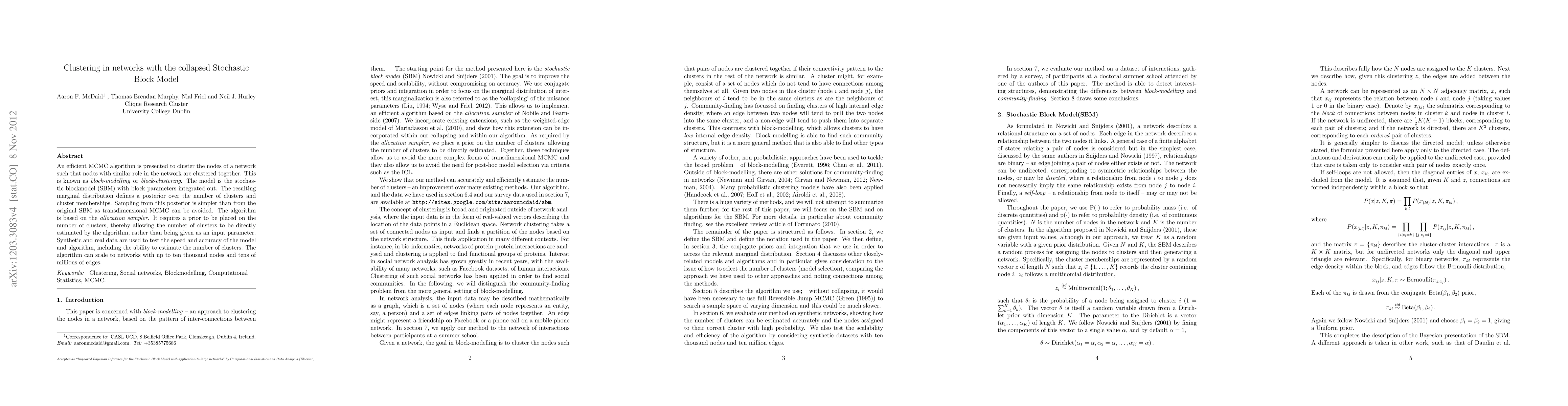 A new algorithm is presented to cluster network nodes into groups based on their roles, using a modified stochastic block model that simplifies sampling from the posterior distribution. The algorithm can efficiently handle large networks with thousands of nodes and scales to tens of millions of edges.