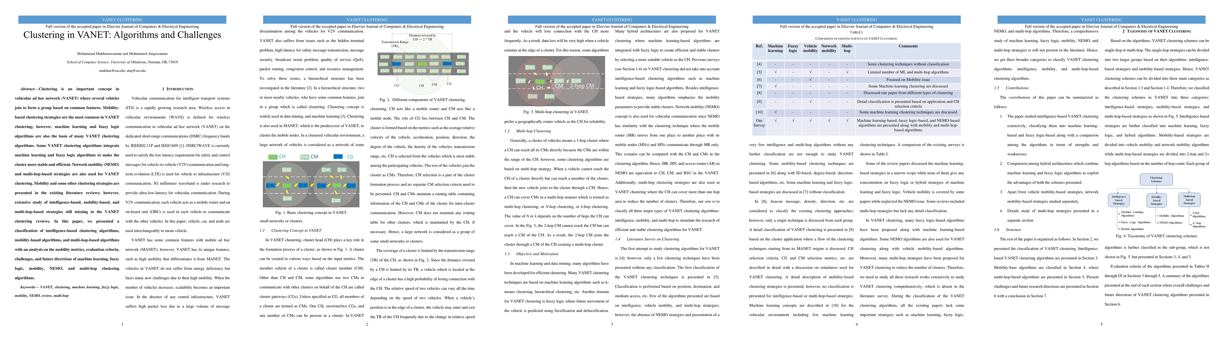 This paper classifies and analyzes VANET clustering algorithms, focusing on intelligence-based, mobility-based, and multi-hop strategies. It evaluates the metrics, criteria, challenges, and future directions of machine learning, fuzzy logic, and network mobility approaches.