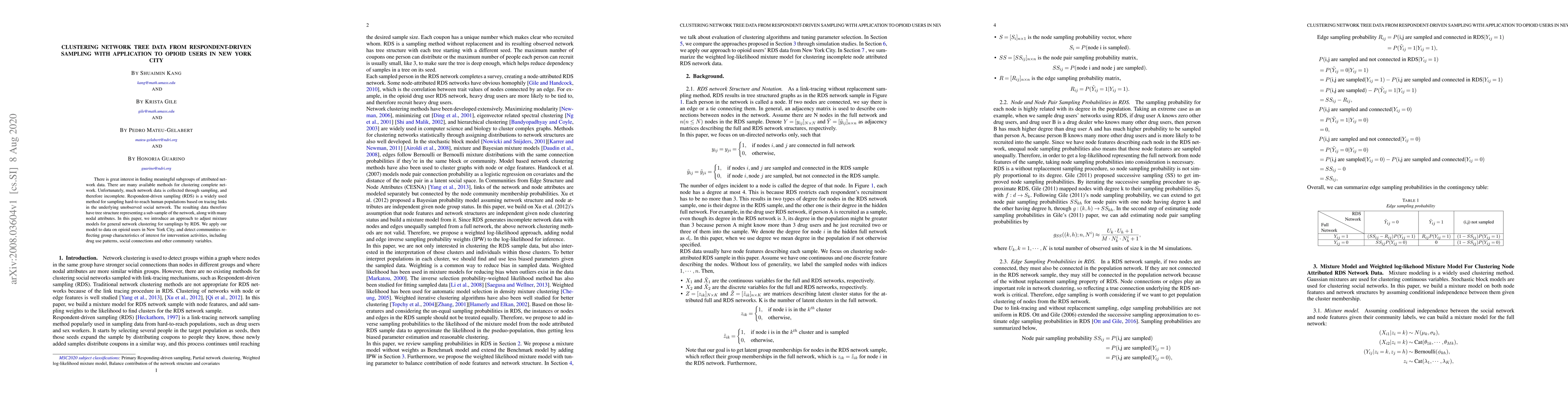 This paper proposes a method to cluster incomplete network data collected via respondent-driven sampling (RDS), focusing on the tree structure inherent in such data. The approach adjusts mixture models for effective clustering, and it is applied to opioid users in New York City to identify meaningful subgroups for intervention strategies.