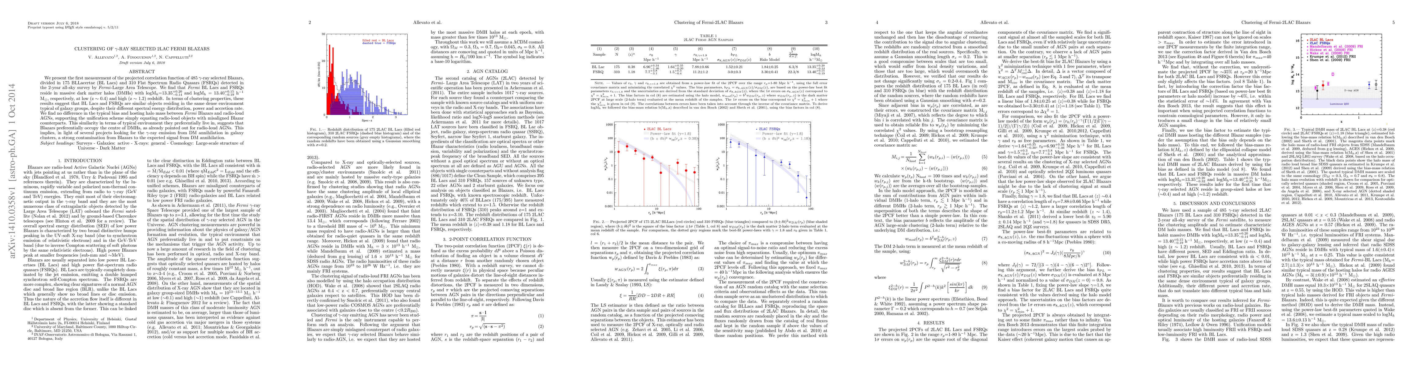 We present the first measurement of the projected correlation function of 485 gamma-ray selected Blazars, divided in 175 BLLacertae (BL Lacs) and 310 Flat Spectrum Radio Quasars (FSRQs) detected in the 2-year all-sky survey by Fermi-Large Area Telescope. We find that Fermi BL Lacs and FSRQs reside in massive dark matter halos (DMHs) with logMh=13.35+0.20/-0.14 and logMh = 13.40+0.15/-0.19 Msun/h, respectively, at low (z=0.4) and high (z =1.2) redshift. In terms of clustering properties, these results suggest that BL Lacs and FSRQs are similar objects residing in the same dense environment typical of galaxy groups, despite their different spectral energy distribution, power and accretion rate. We find no difference in the typical bias and hosting halo mass between Fermi Blazars and radio-loud AGN, supporting the unifcation scheme simply equating radio-loud objects with misaligned Blazar counterparts. This similarity in terms of typical environment they preferentially live in, suggests that Blazars preferentially occupy the centre of DMHs, as already pointed out for radio-loud AGN. This implies, in light of several projects looking for the gamma-ray emission from DM annihilation in galaxy clusters, a strong contamination from Blazars to the expected signal from DM annihilation.