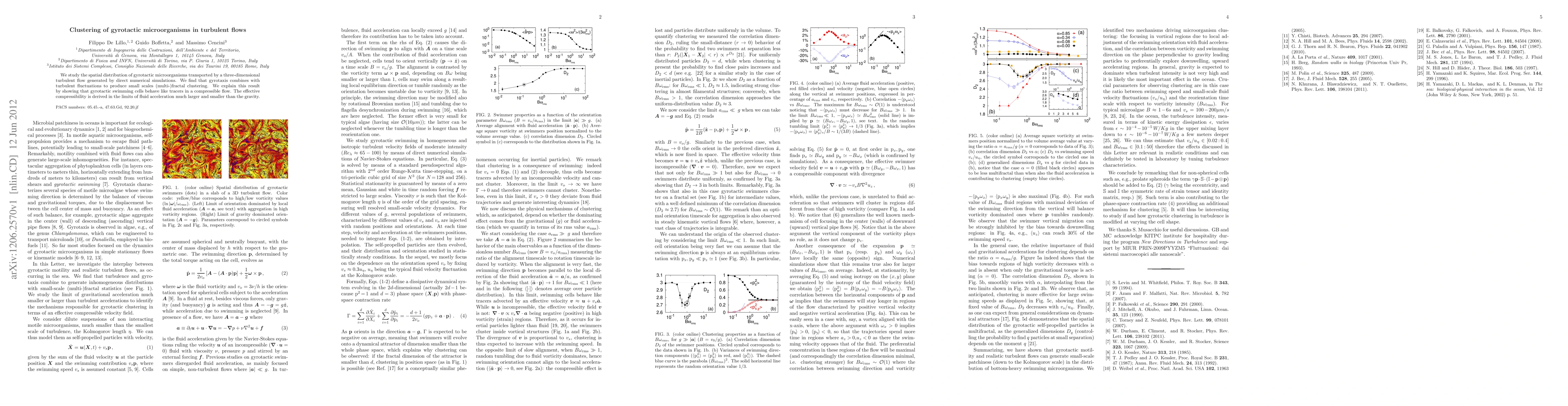 This study explores how gyrotactic microorganisms cluster in turbulent flows, revealing that gyrotaxis and turbulent fluctuations create small-scale fractal clustering. The researchers demonstrate that these microorganisms behave like tracers in a compressible flow, deriving effective compressibility under varying fluid acceleration conditions.